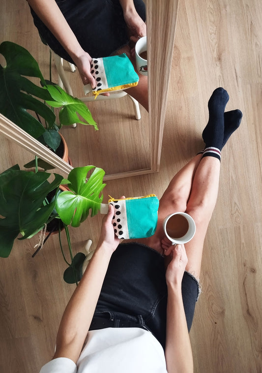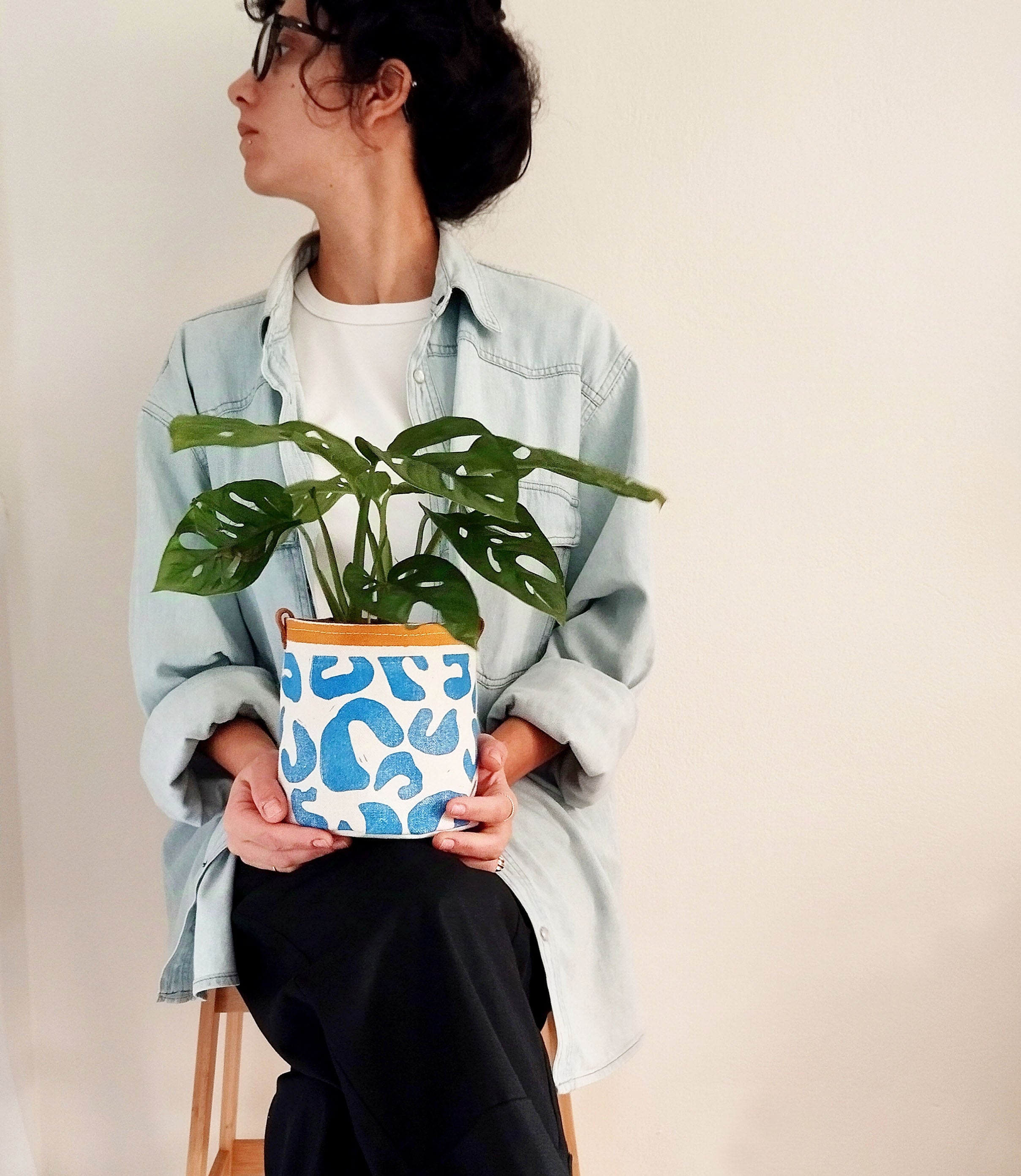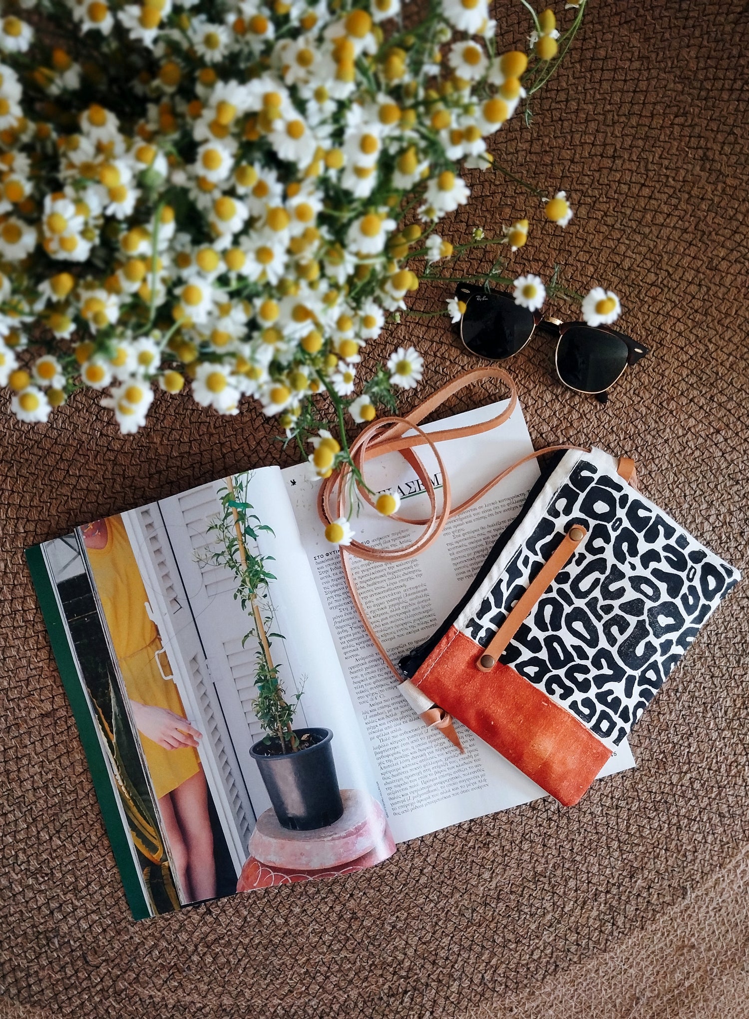 A purse, a cushion, a notebook that feel like a real piece of art.
