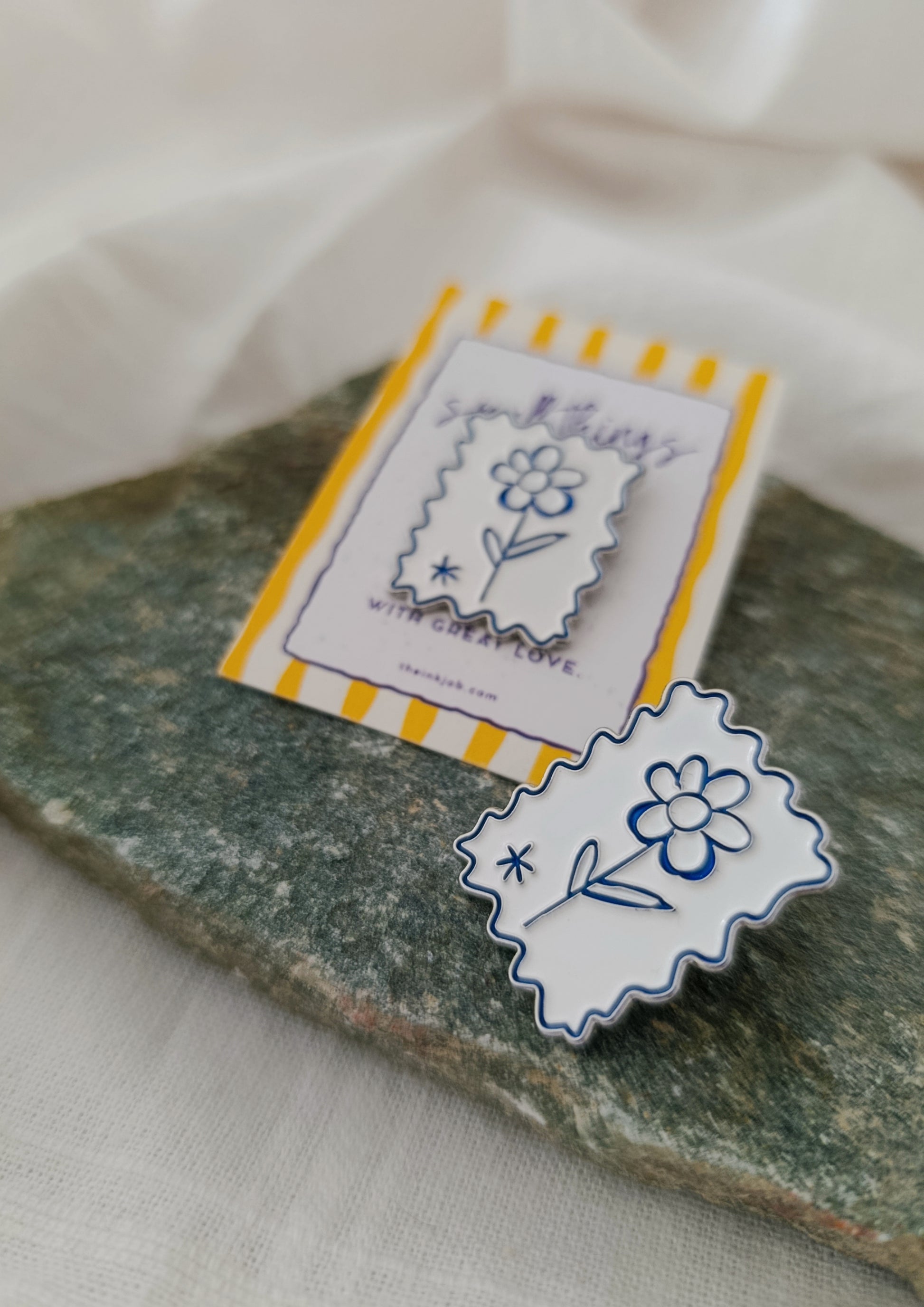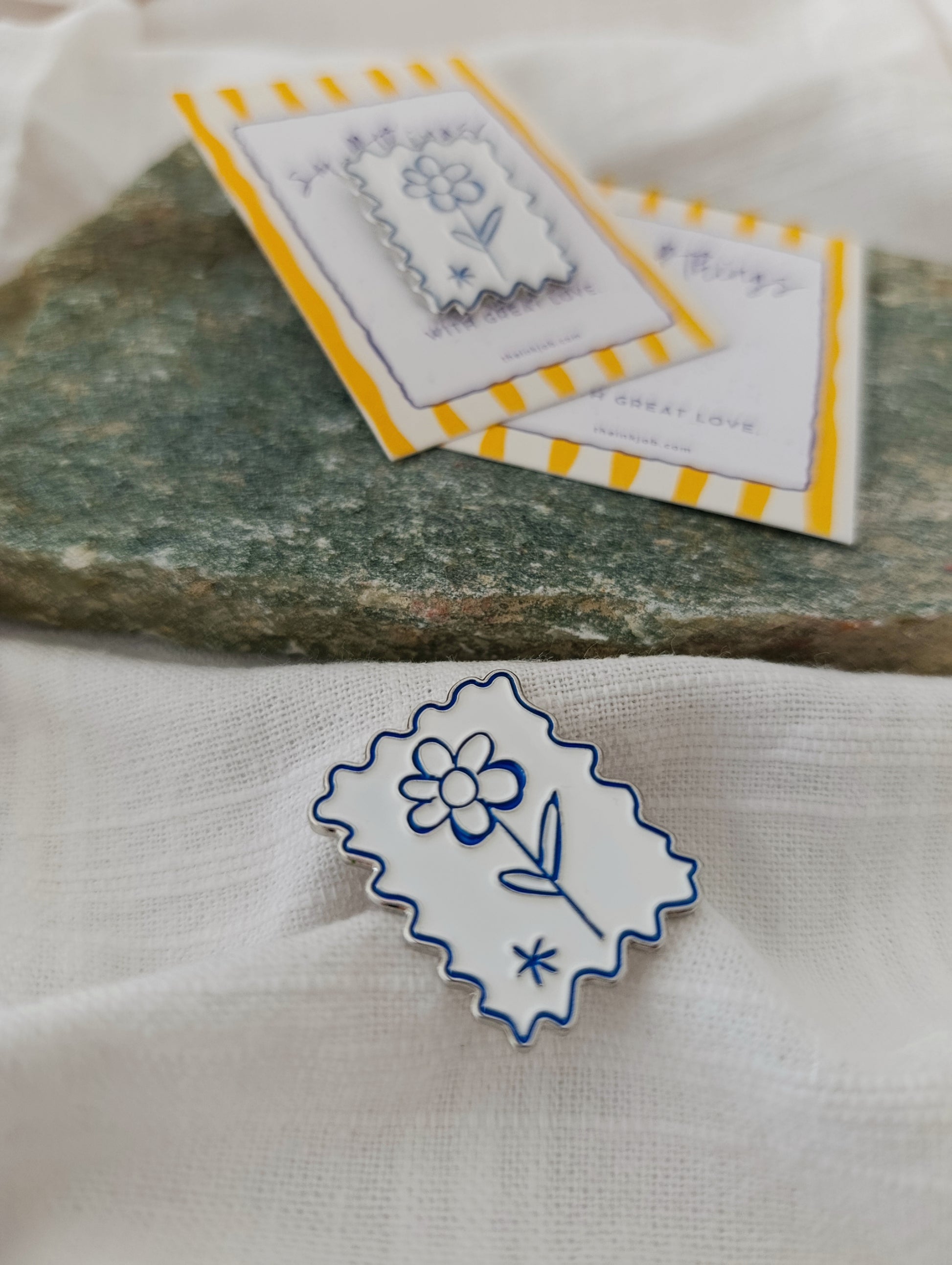Μεταλλική Καρφίτσα Σμάλτου με Λουλουδάκι