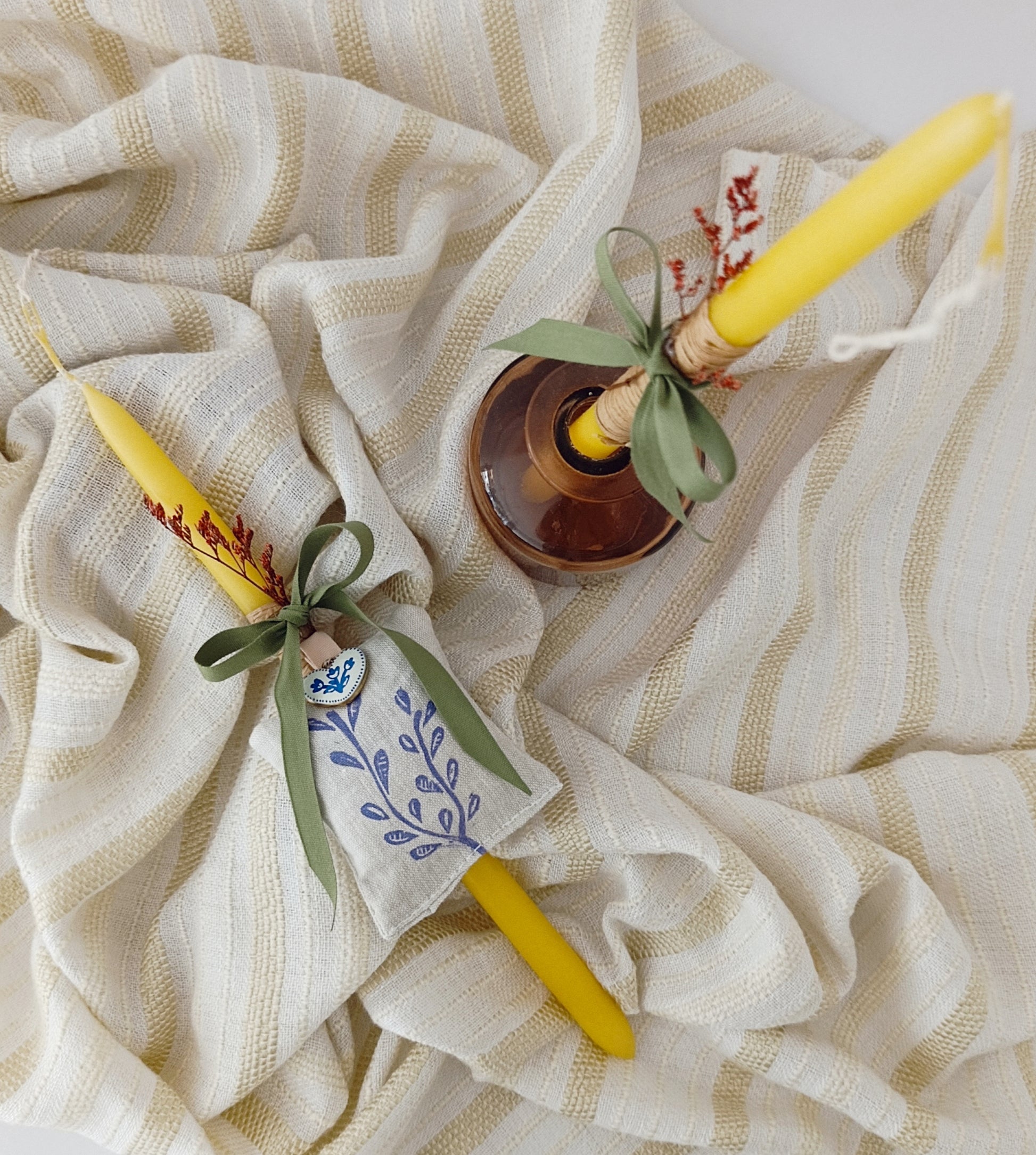 Κίτρινο Λαμπαδάκι με Χειροποίητο Πουγκί Λεβάντας