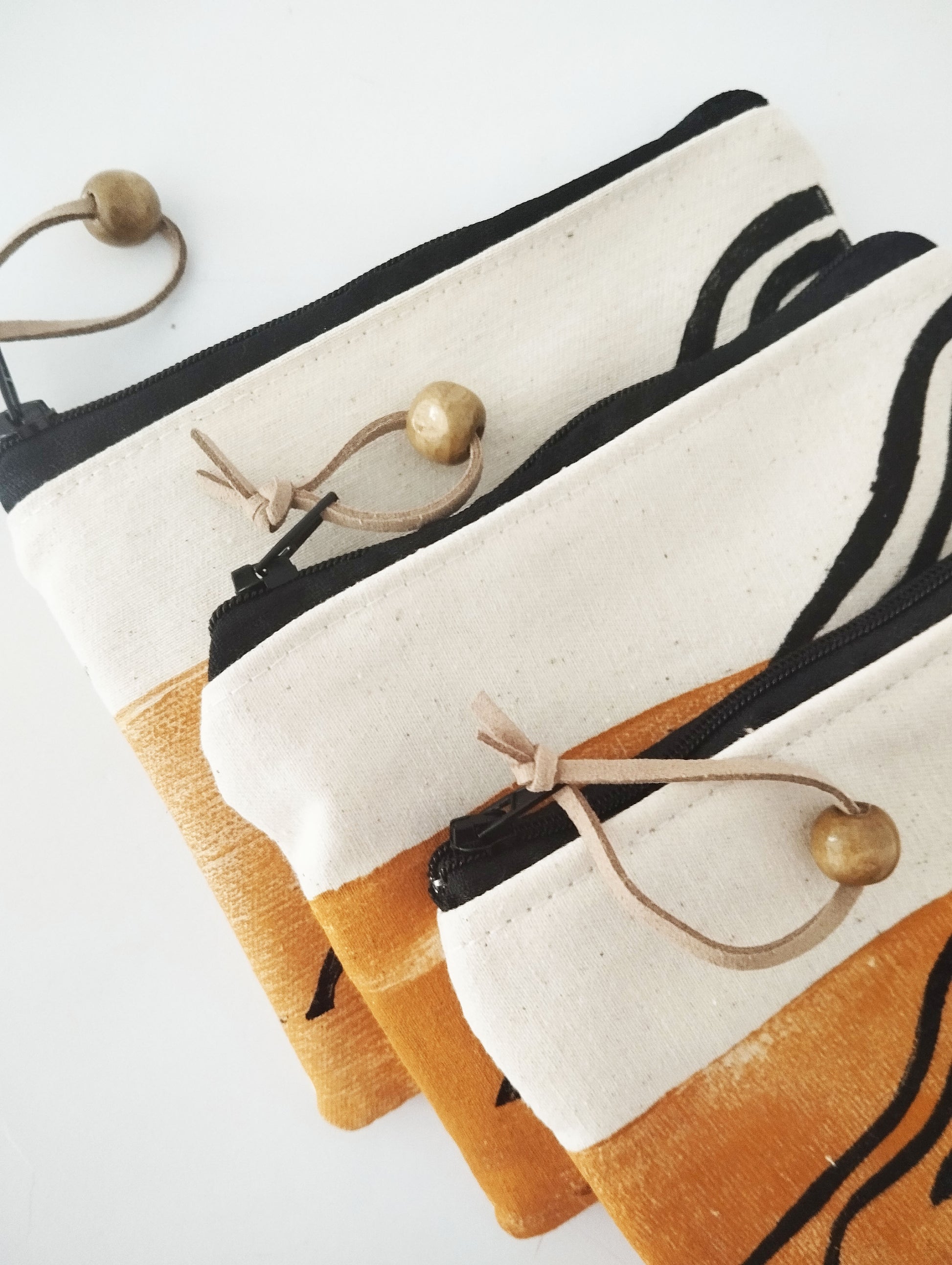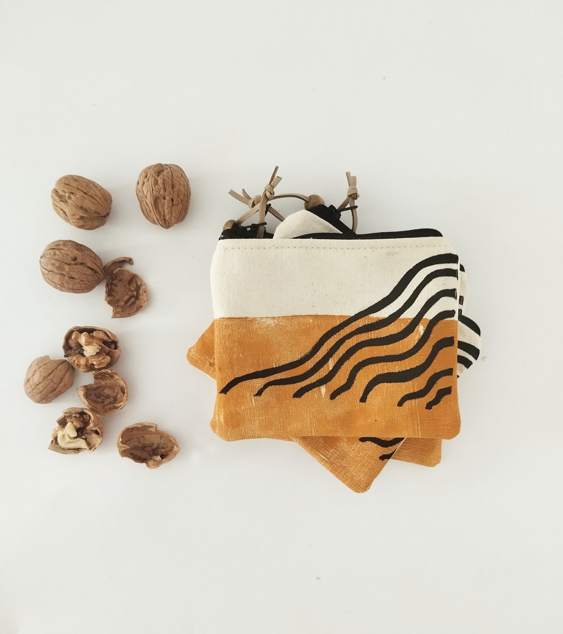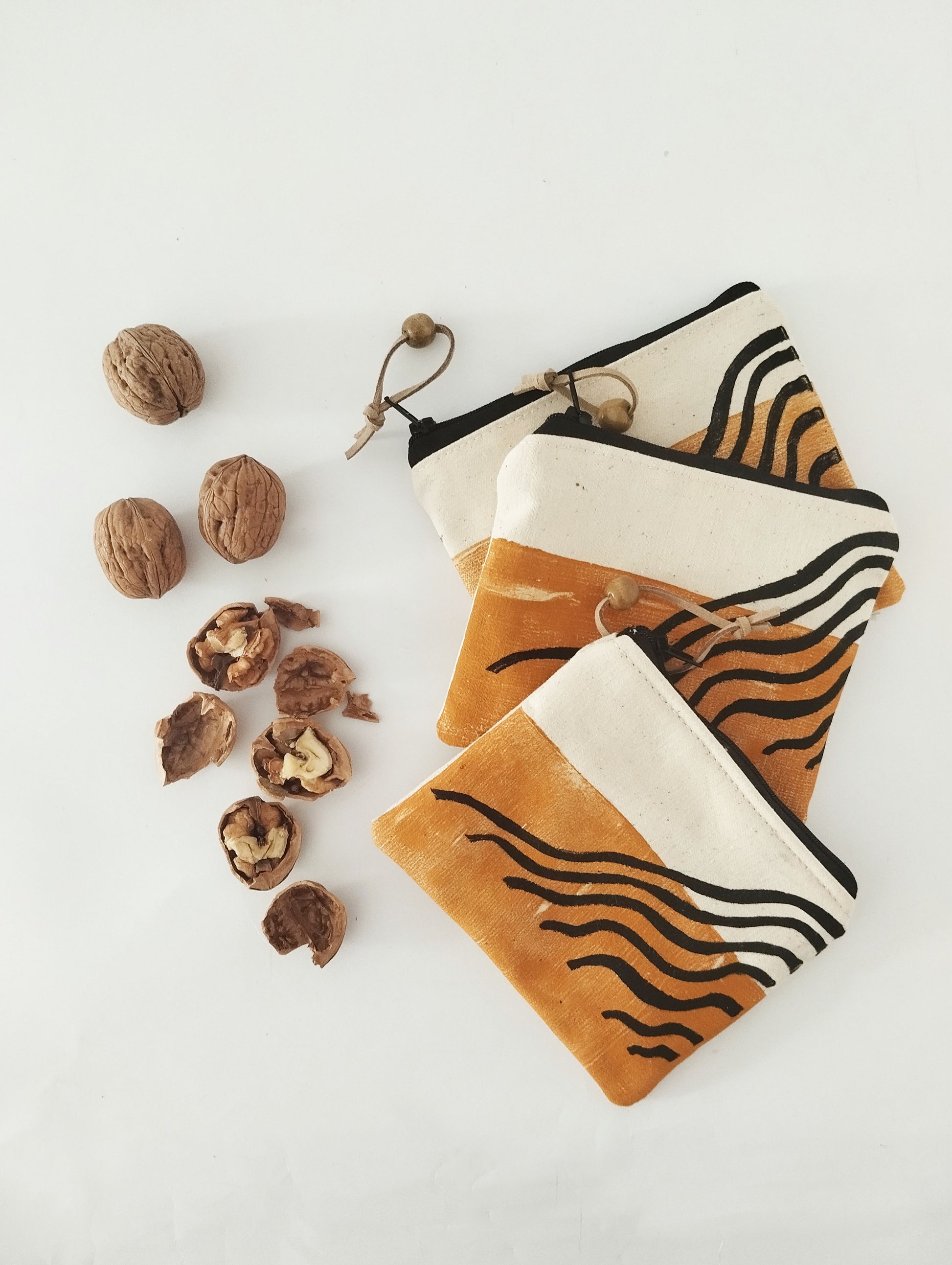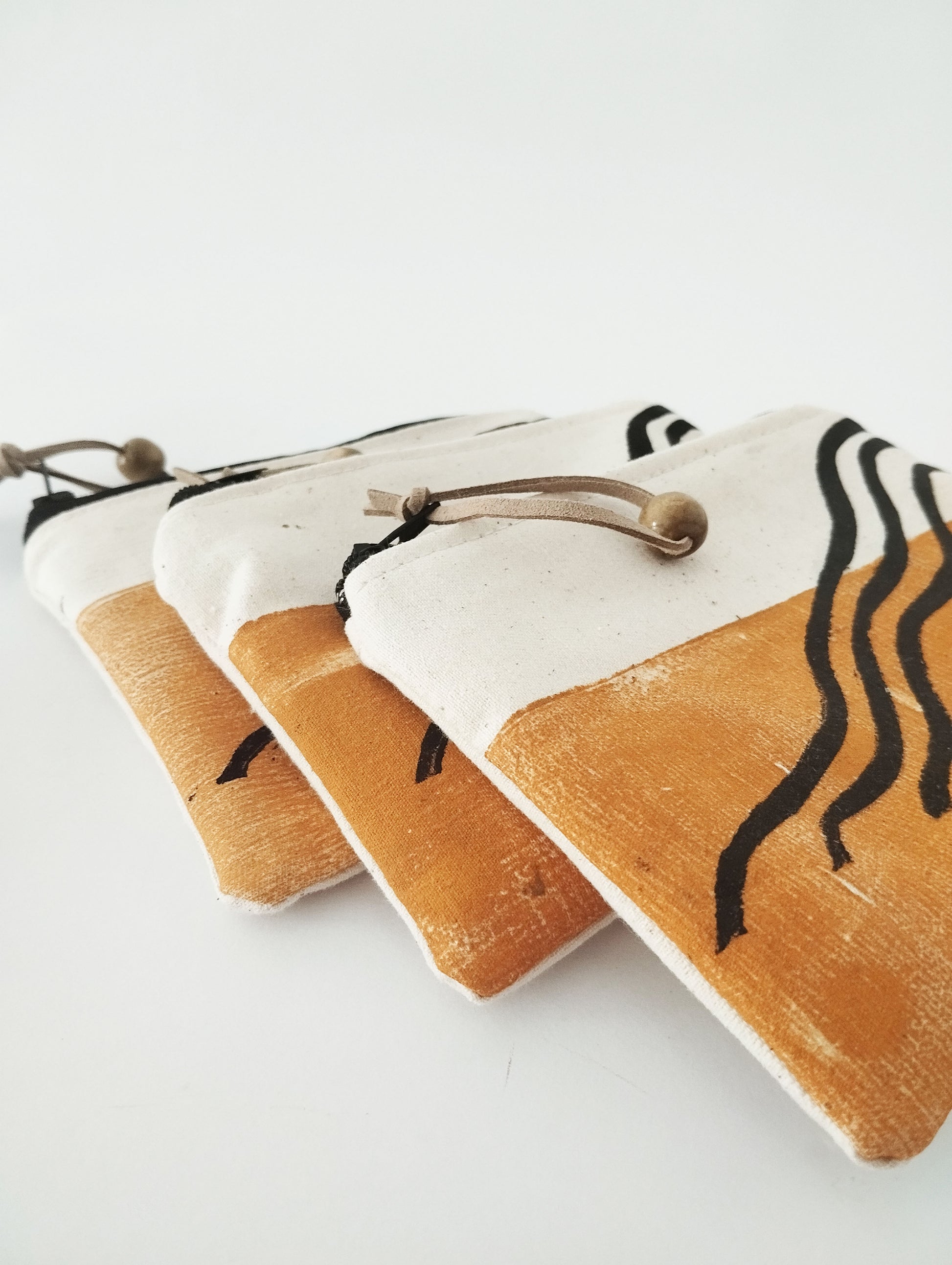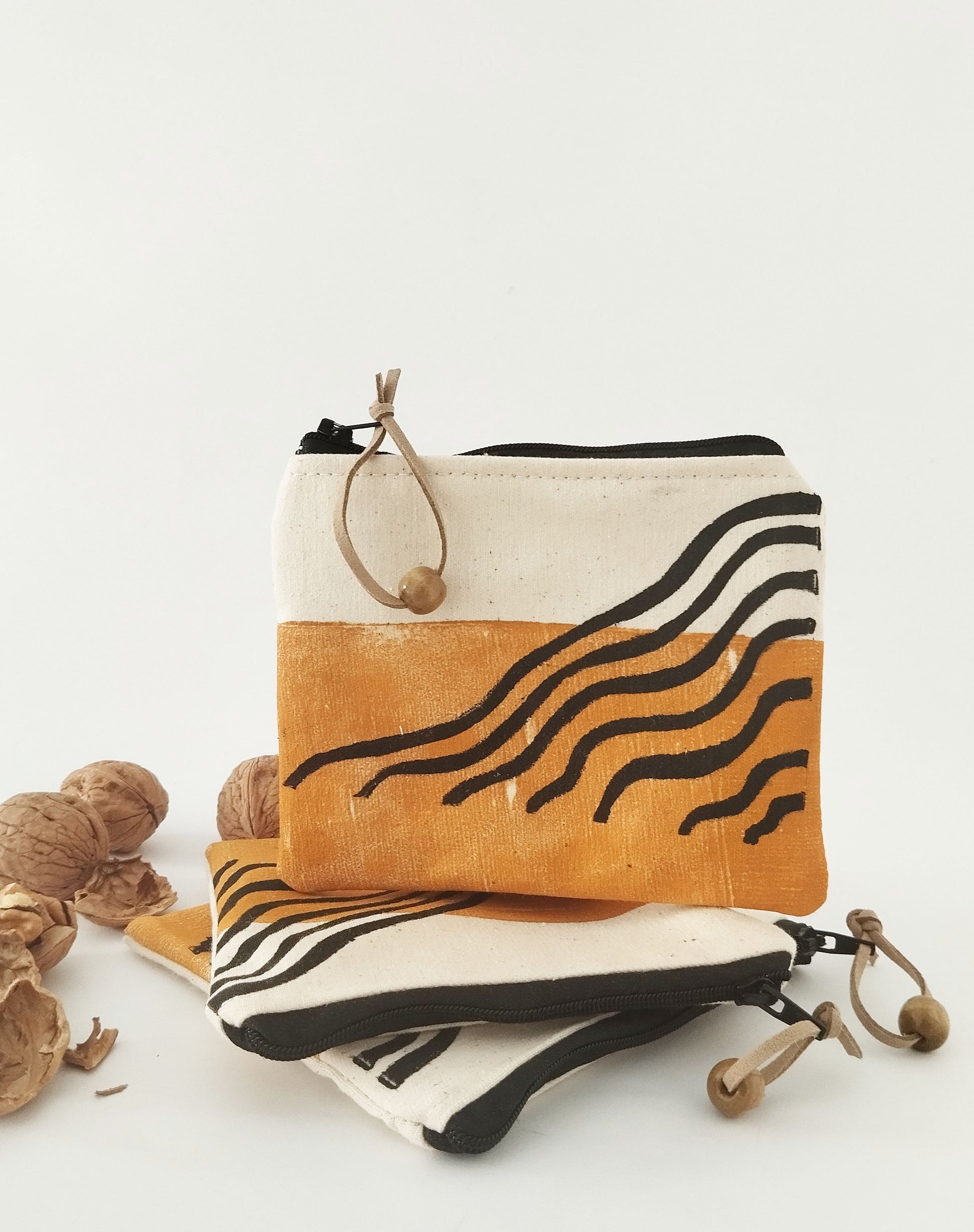 This beautiful abstract design purse is the perfect blend of style and functionality. This zipper wallet is handmade from high-quality cotton fabric that will hold its shape in a perfect way. The mustard yellow / black print is entirely block printed by hand with water-based inks and original block prints. It feels like you carry around a small piece of art.