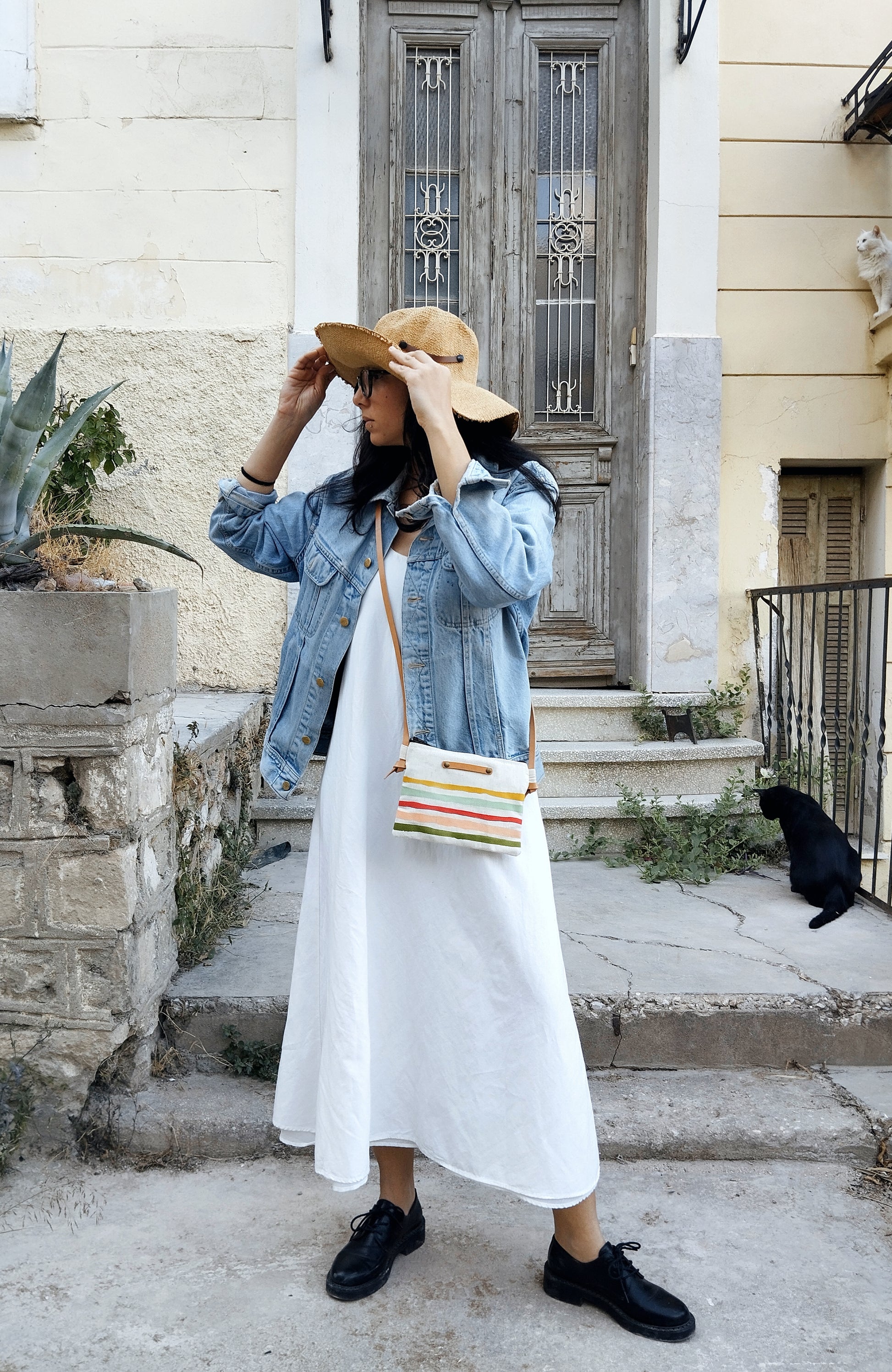 A colorful mini messenger purse that is designed and created by hand having in mind the carefree magic of a summer in Greece. Inspired by sun-drenched island strolls, whitewashed villages, and the deep blues of the Aegean Sea, this bag is your go-to for warm days and wanderlust-filled nights.