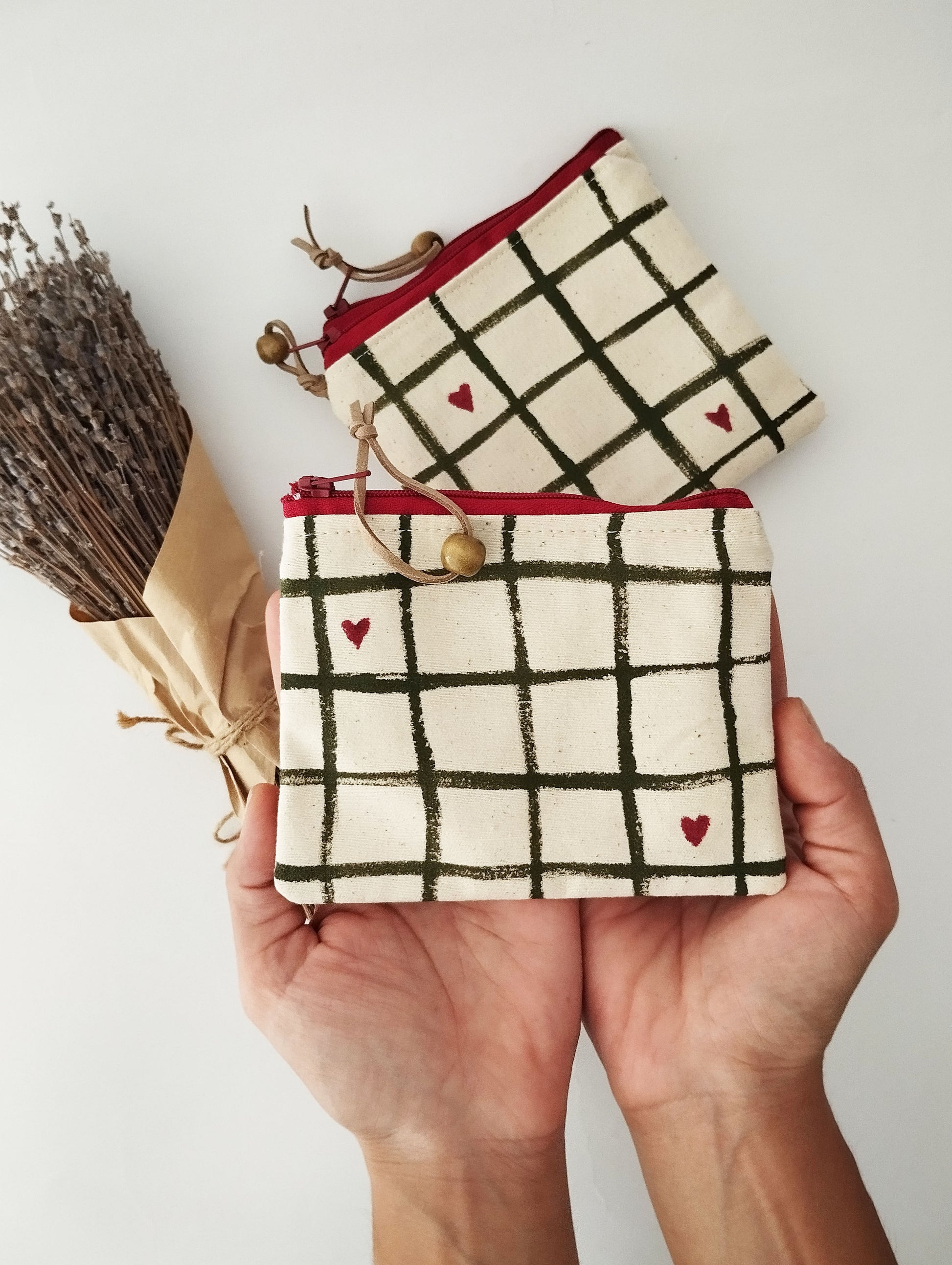 This zipper pouch is designed to keep your change, small bills, and other tiny treasures organized. This purse is handmade from high-quality cotton fabric that will hold its shape in a perfect way.