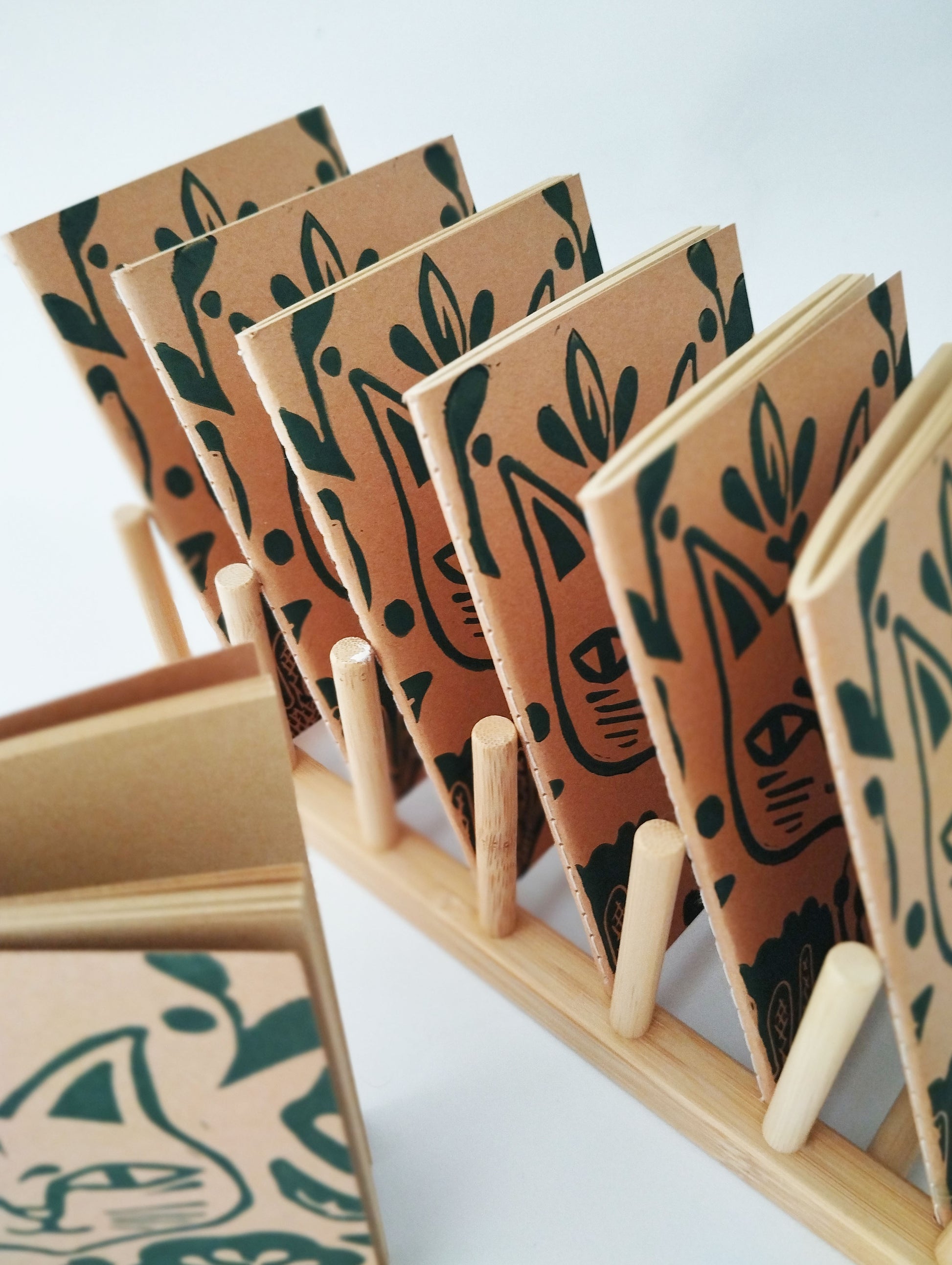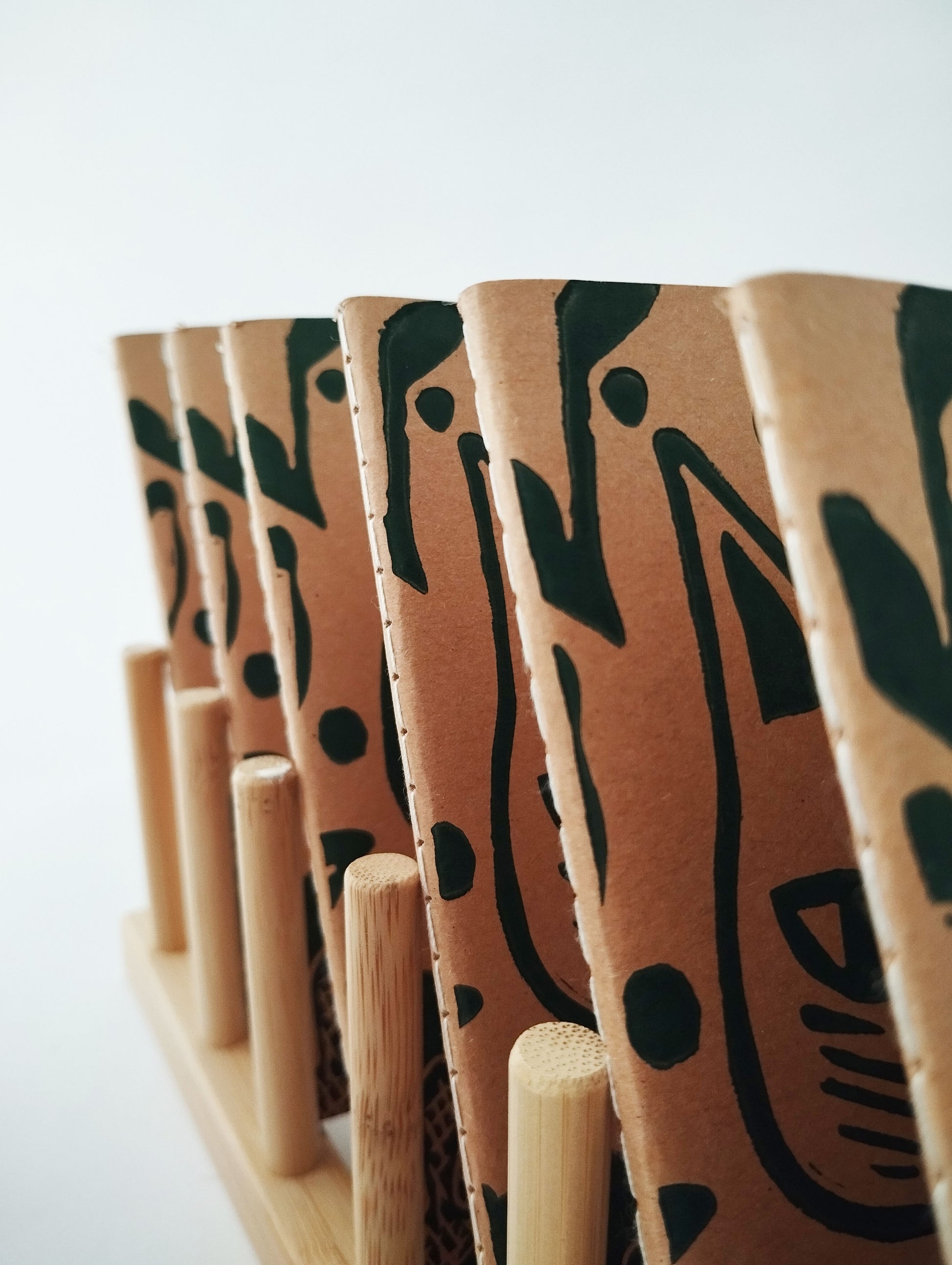 The dark green print makes a perfect contrast with the kraft pages and the stitches at the back of the notepad give a beautiful extra texture. The notebook has 30 blank pages.
