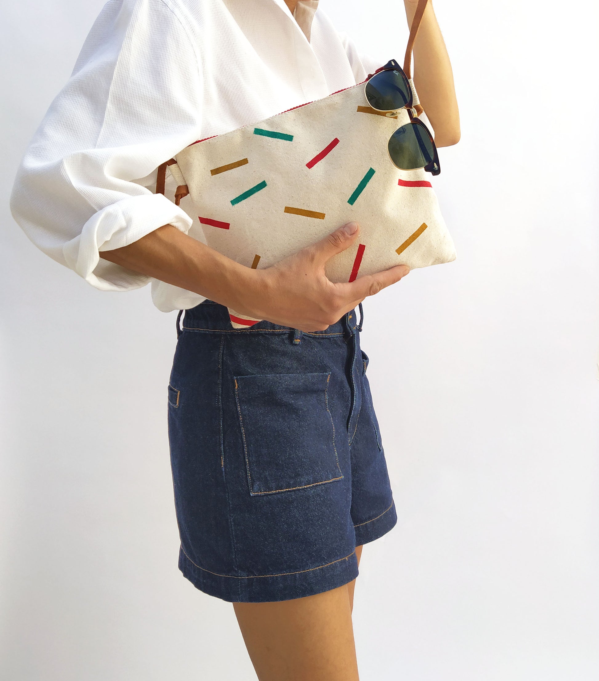 This confetti print messenger purse with the hand printed pops of color is ready to hold all of your on-the-go essentials. This colorful bag instantly boosts your artsy-style sky high, and the colors are great from spring to fall. The design of this cross body bag is minimal but eye catching and it can go with everything you wear. This wearable art purse is actually art rocking through the street.