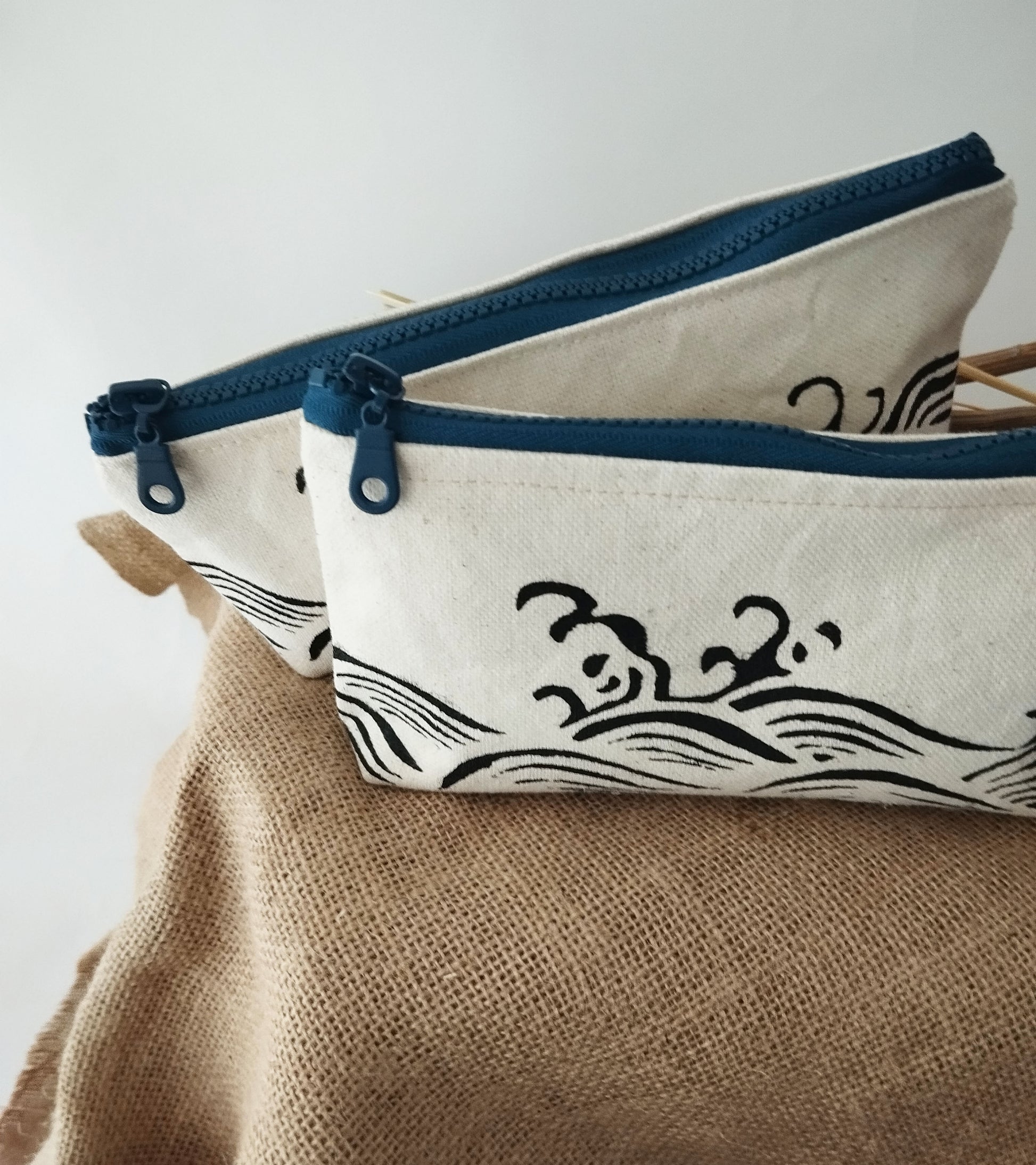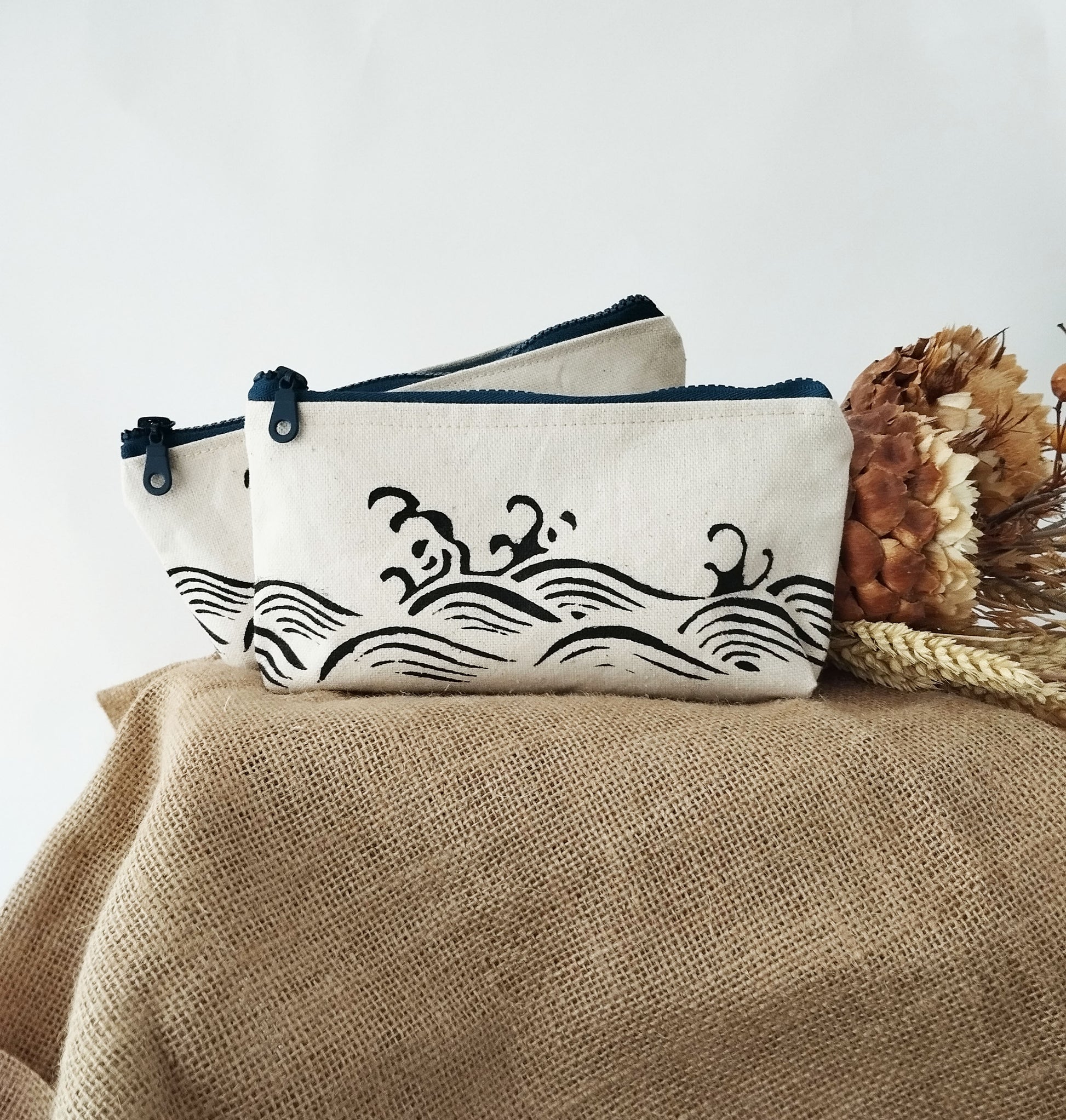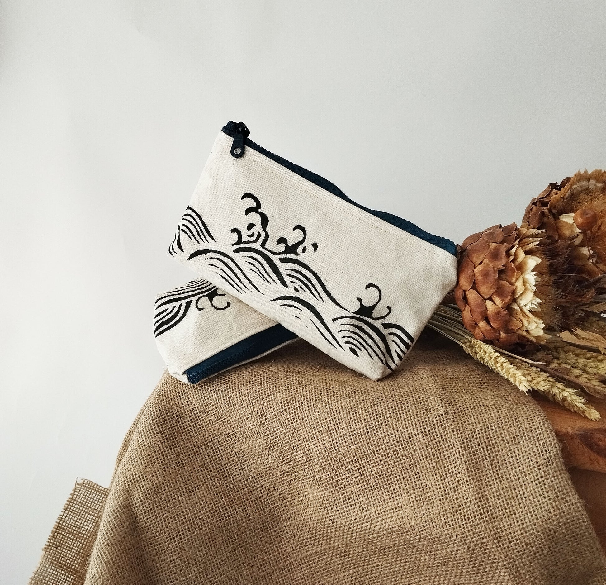 Use this Japanese wave Cosmetic Purse as a pencil case or a bag organizer and make everyday life a fashion statement. This stylish bag organizer with the iconic Japanese wave print, is created with great attention to the detail. The monochromatic print is bold and minimal and you are going to love how beautiful and unique it is.