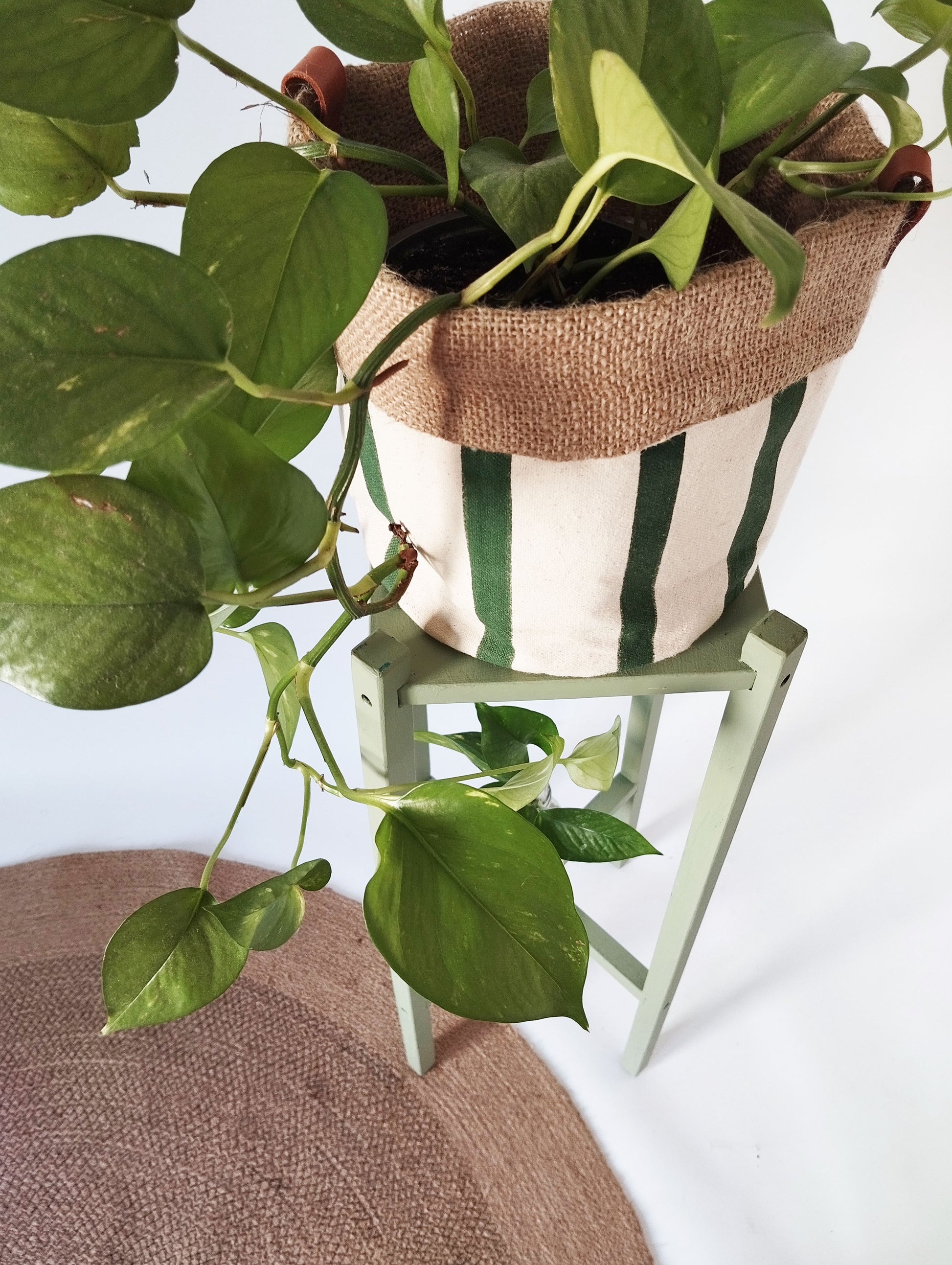 Each canvas planter is lovingly created with great attention to detail, ensuring a unique piece that stands out in any room. This is made of 100% cotton canvas. The inner lining is made of natural burlap that helps the basket to keep its shape. The canvas is steady and thick, just to make sure that your basket seems nice and elegant. The fabric is entirely painted by hand with brushes and fabric inks. This hand painted plant pot cover with the cheerful but elegant stripes feels like a real piece of art.