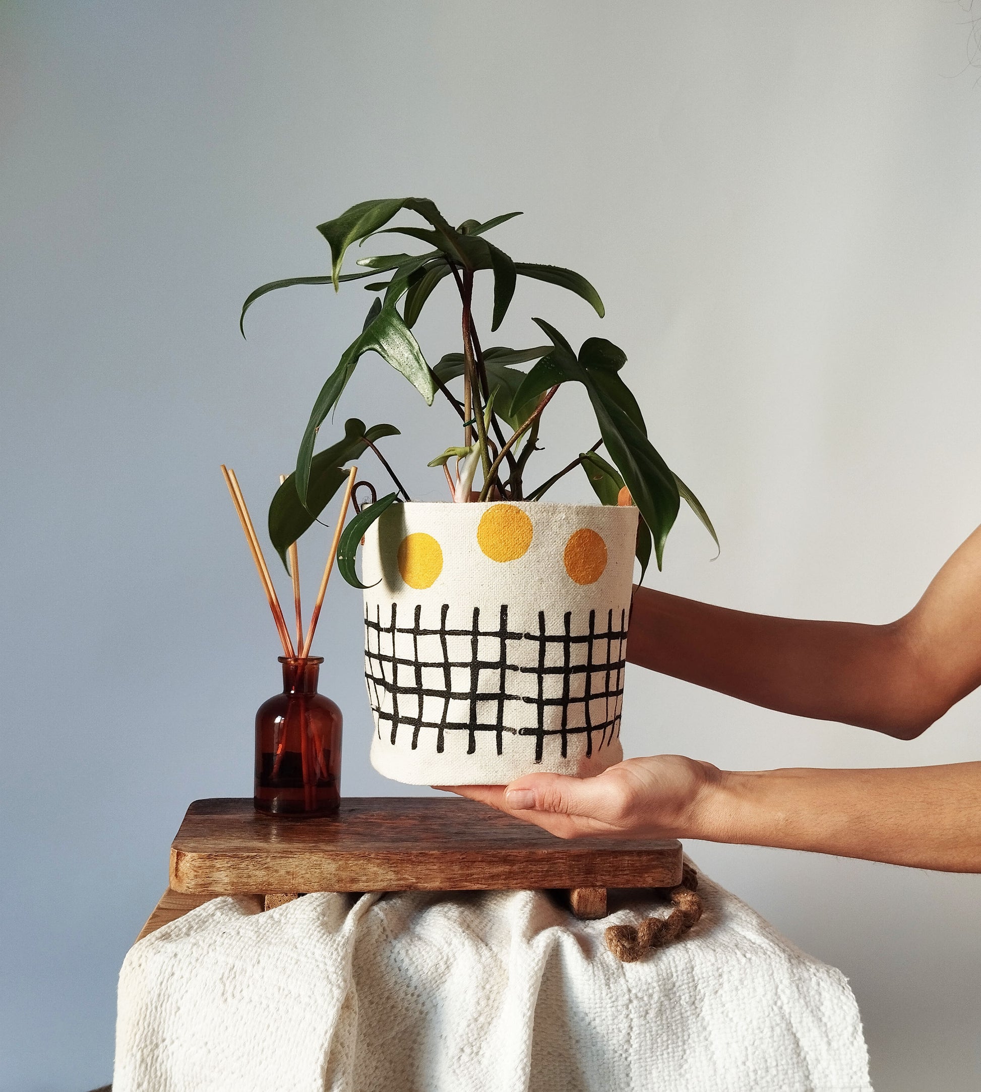 This fabric basket could also be used for other purposes throughout the home and not limited to plants.