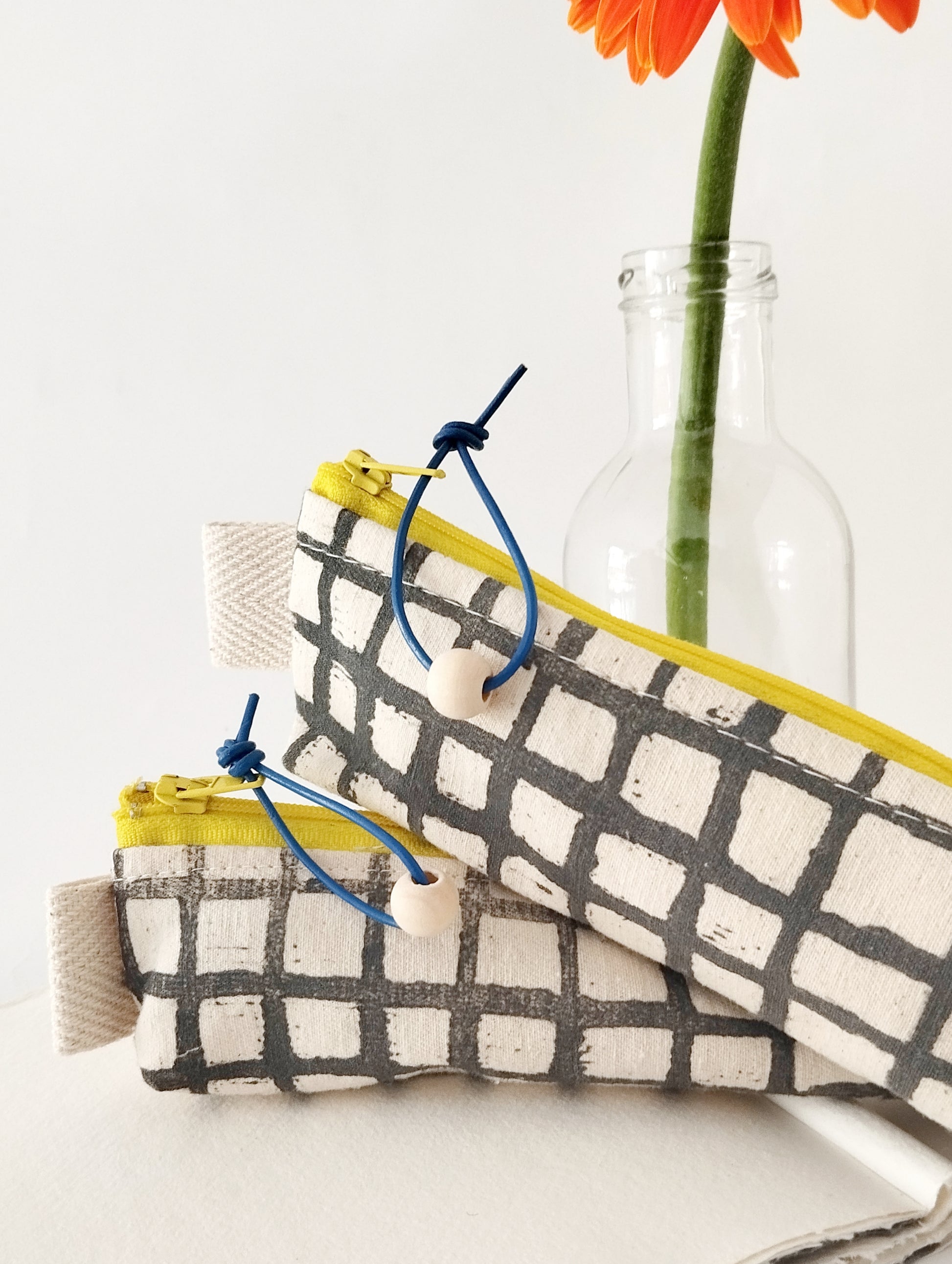 As this grid print pencil case is entirely block printed by hand I recommend avoiding the washing machine.