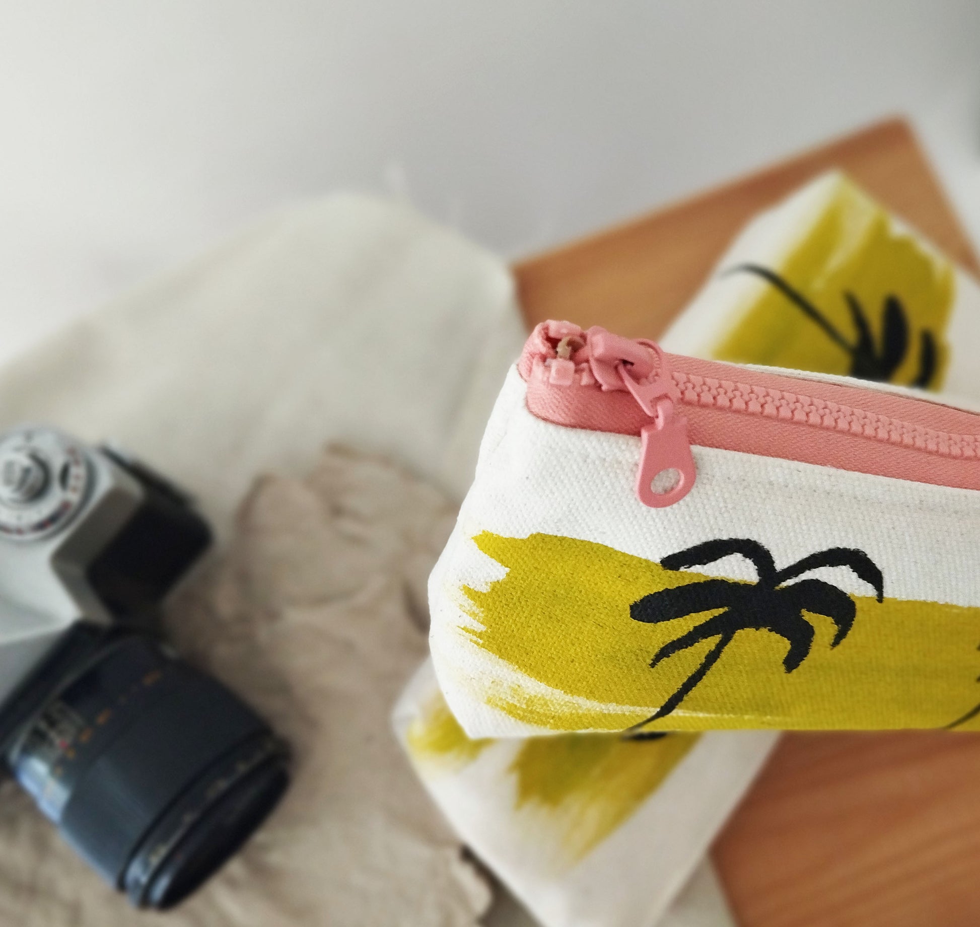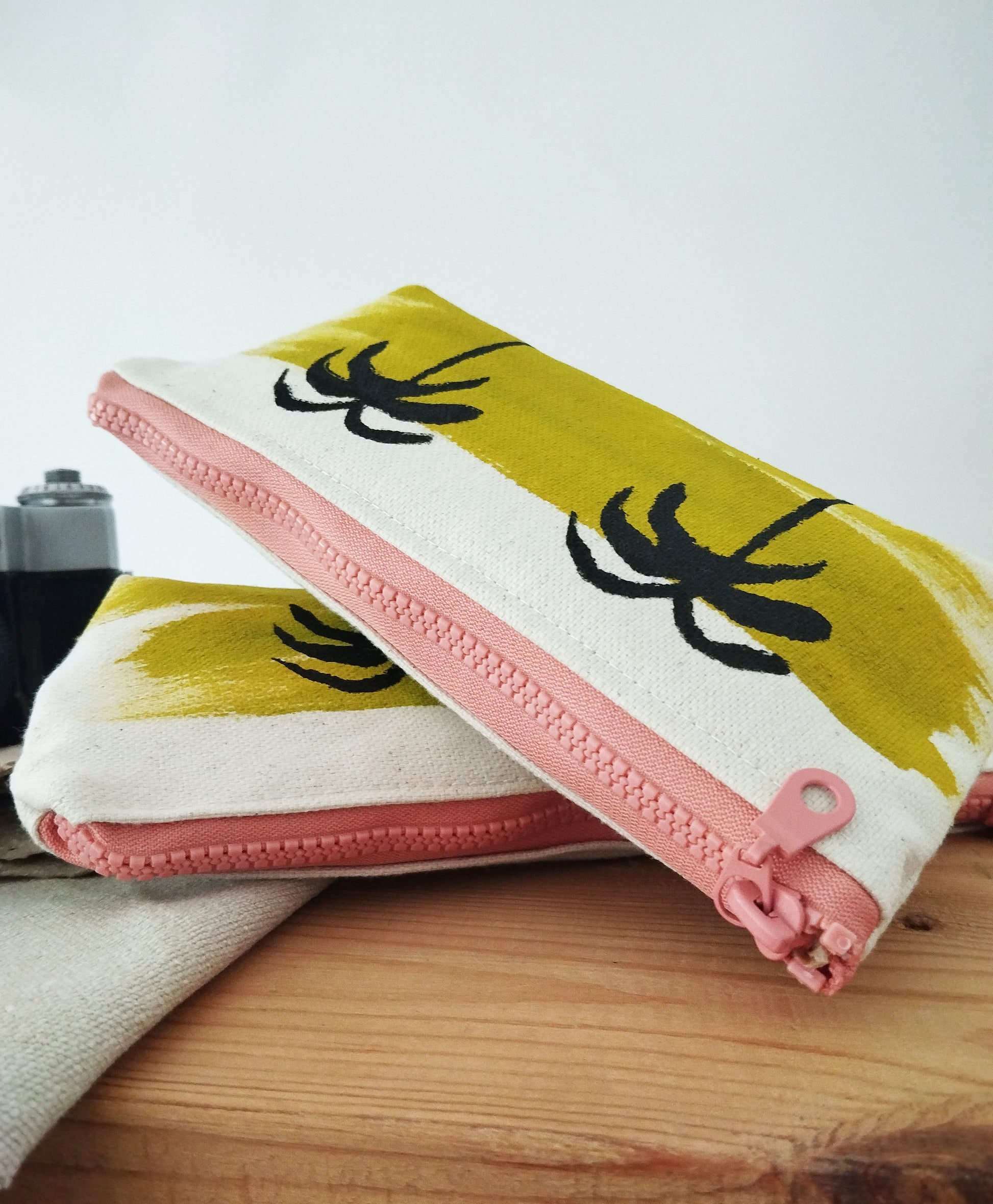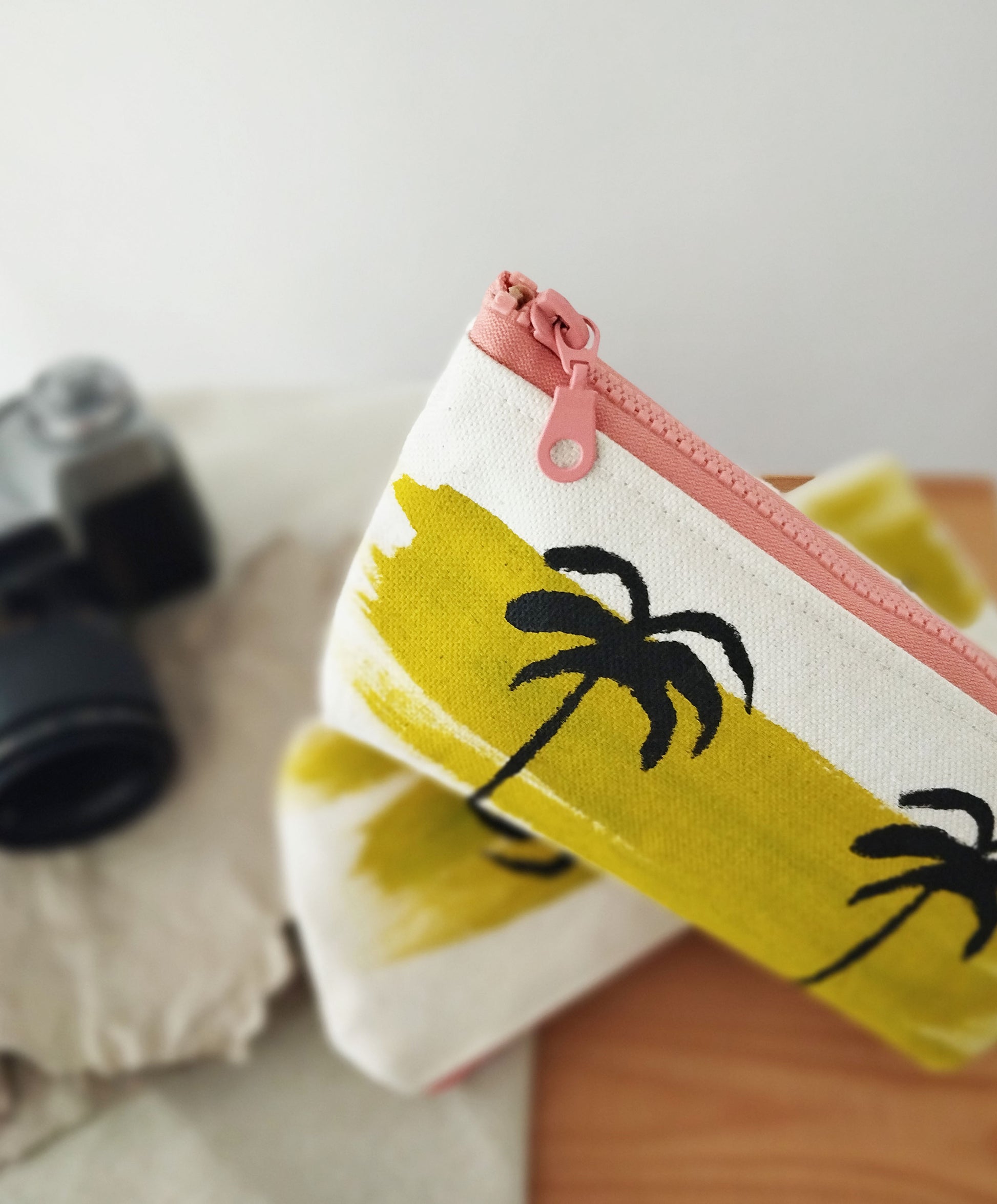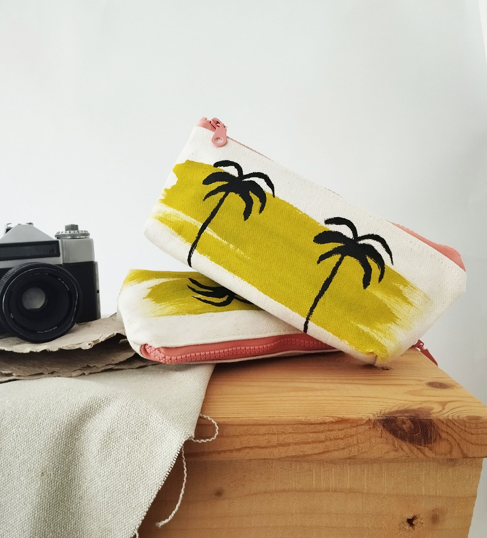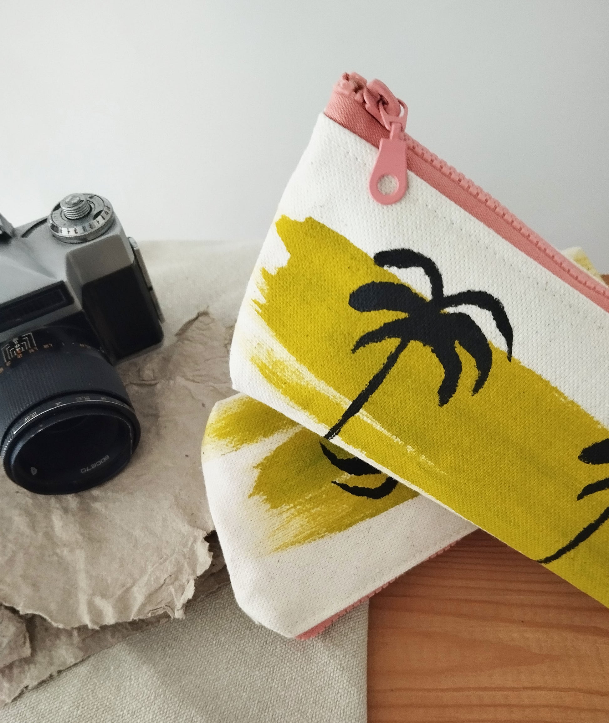 Beautifully painted by hand this cosmetics purse with the minimal palm trees print will add the ultimate touch to a modern boho outfit. The palm tree and the brush stroke are bold but minimal and you are going to love how beautiful and unique this purse is.