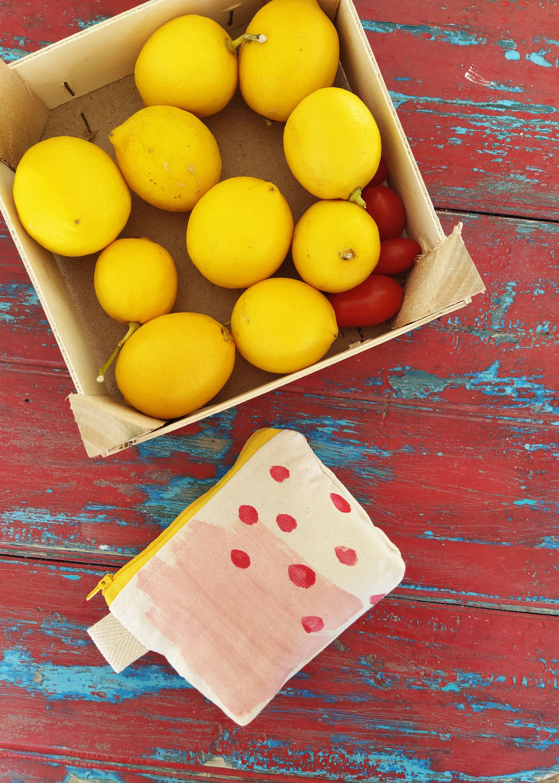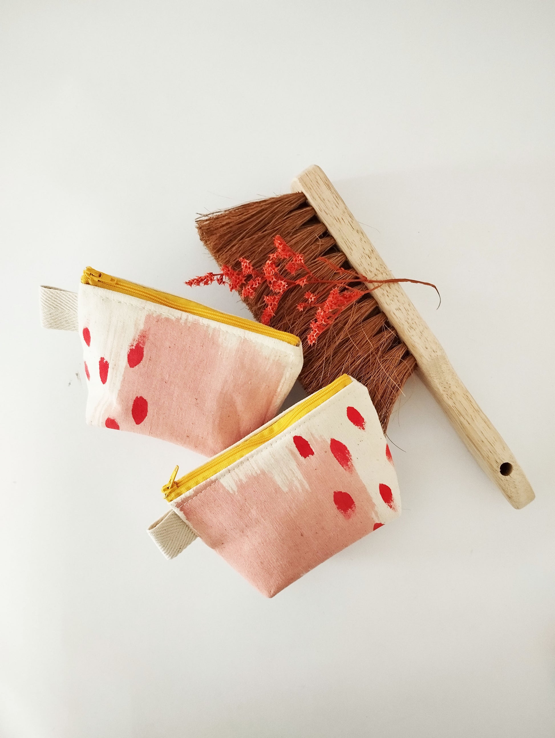 This zipper pouch is handmade of 100% cotton canvas, that will hold its shape in a perfect way. The box corners make it even more spacious. The print is entirely made by hand with water-based inks and brushes. Each brushstroke is entirely unique! The colors are vibrant and the yellow zipper makes it even more stunning.