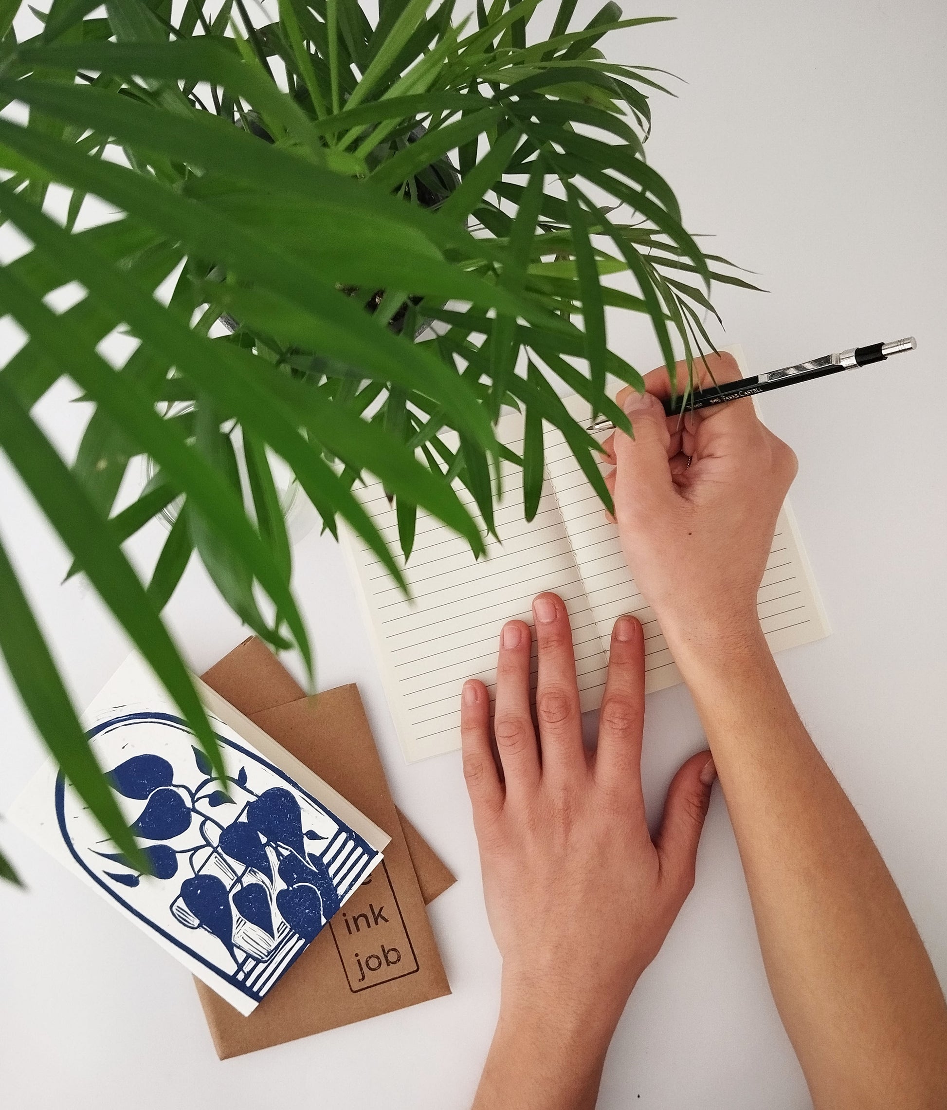 A unique notebook with a house plant print entirely block printed by hand. The cover of this A6 lined journal is made plantable seed paper. Once you finish writing down all of its pages you can plant this and watch the chrysanthemums grow. Absolutely sustainable and zero waste.