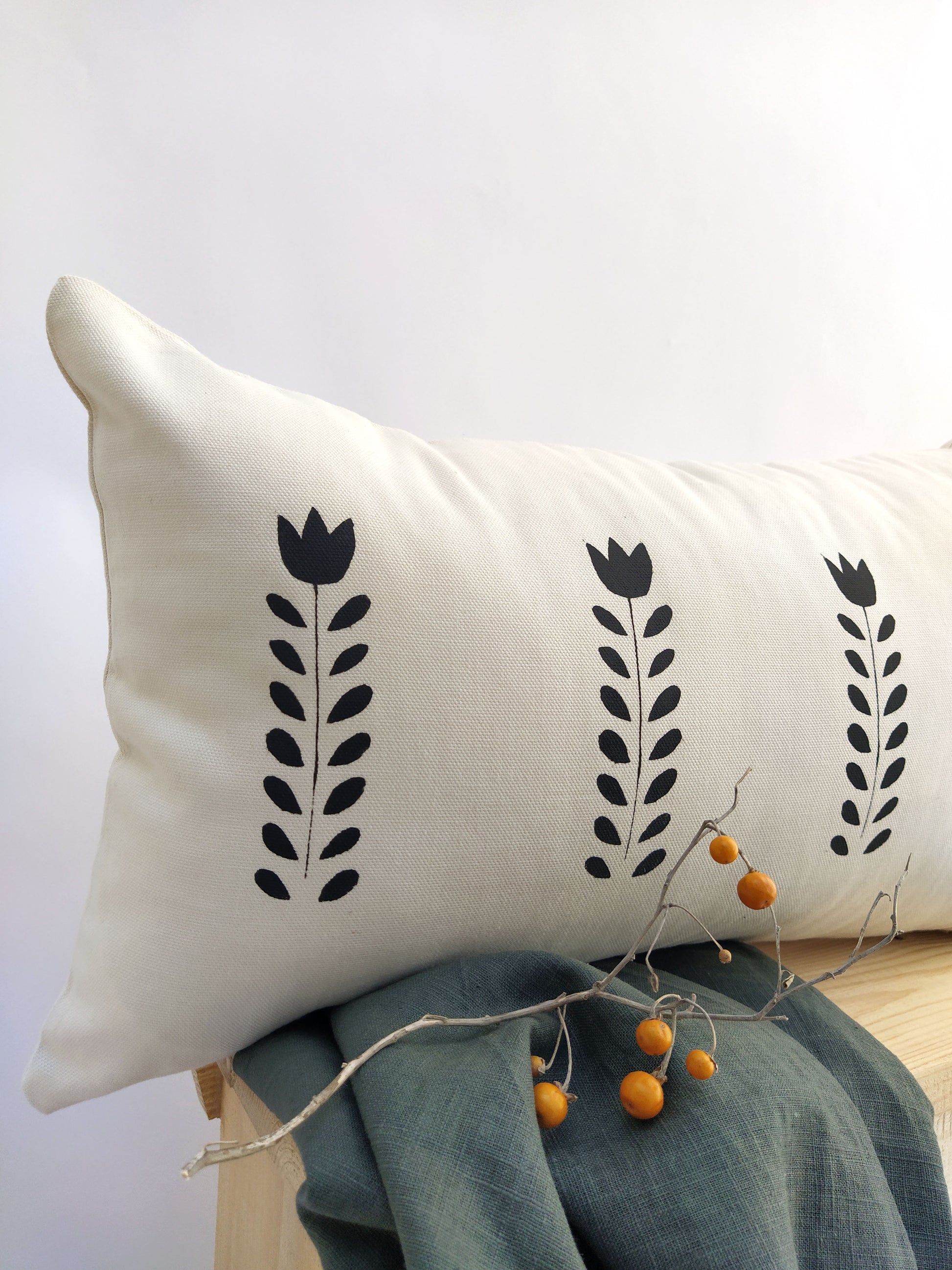 This lumbar cushion cover is sure to be the statement piece of any living room, bedroom, or office space. Whether you’re looking to cozy up with a good book or simply add a touch of colour and style to your décor, this cushion cover is the perfect answer! This scandi flower print pillow cover will add that special touch for a cozy nordic style home.
