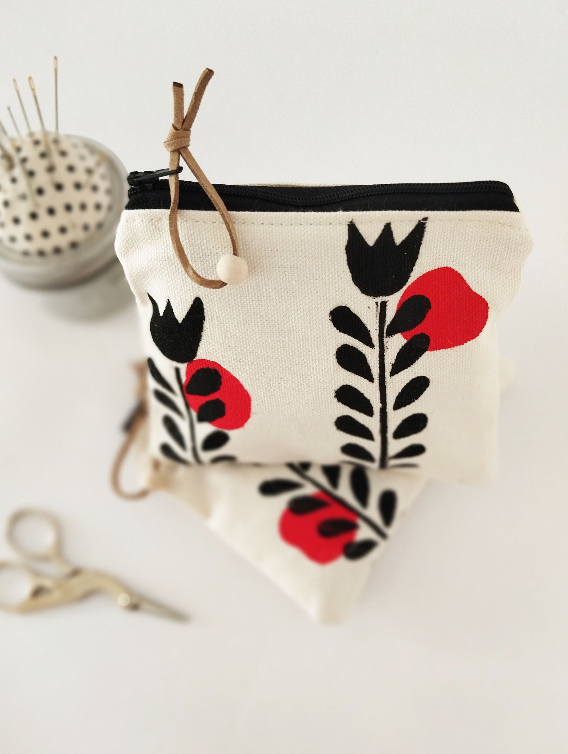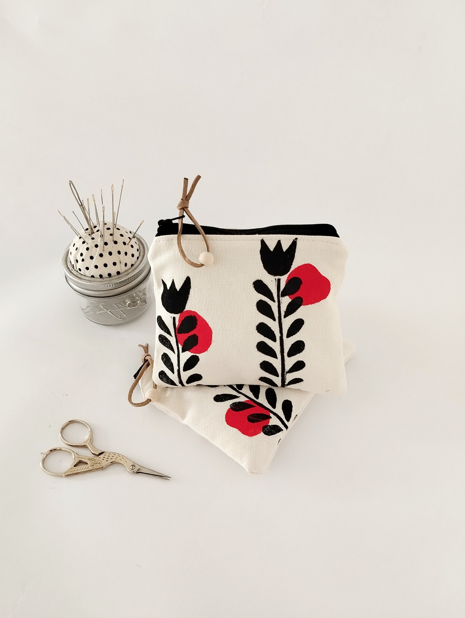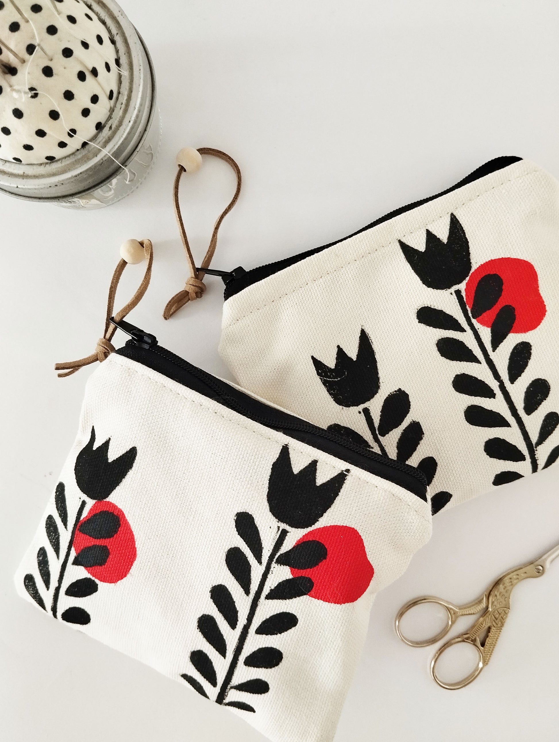 This block printed zipper pouch with the elegant scandi flower is a unique and thoughtful gift for any occasion, or a great way to treat yourself.
