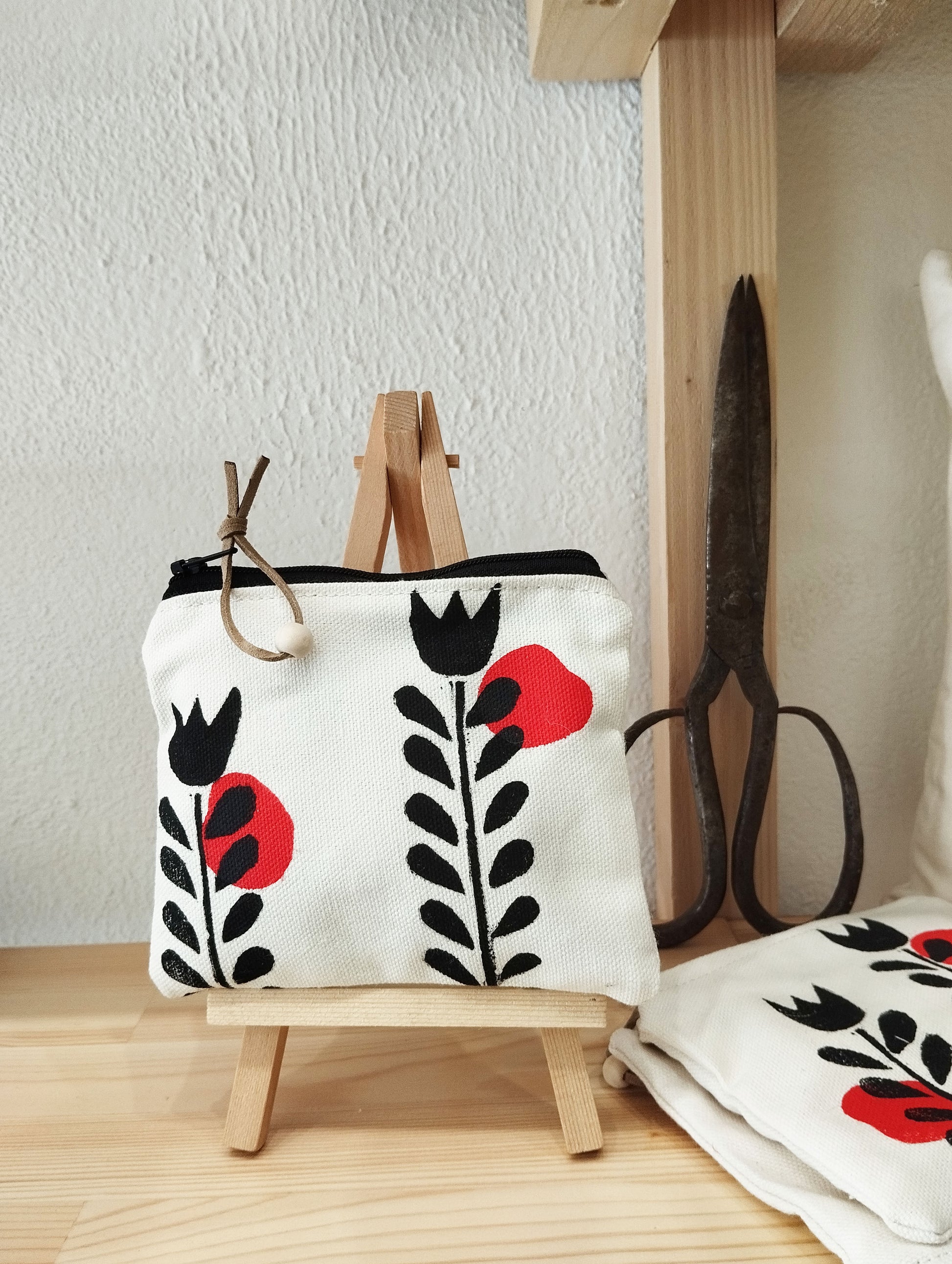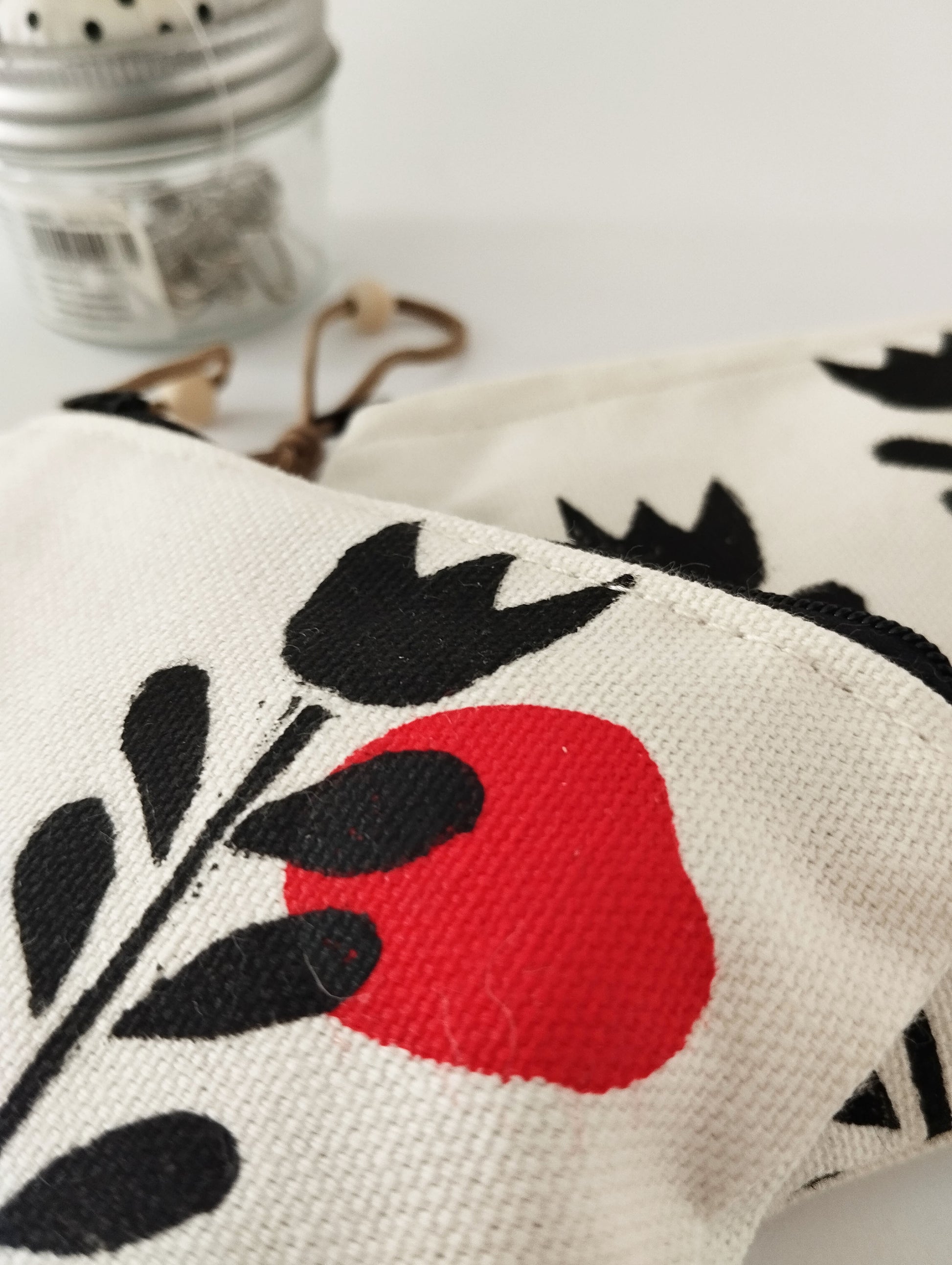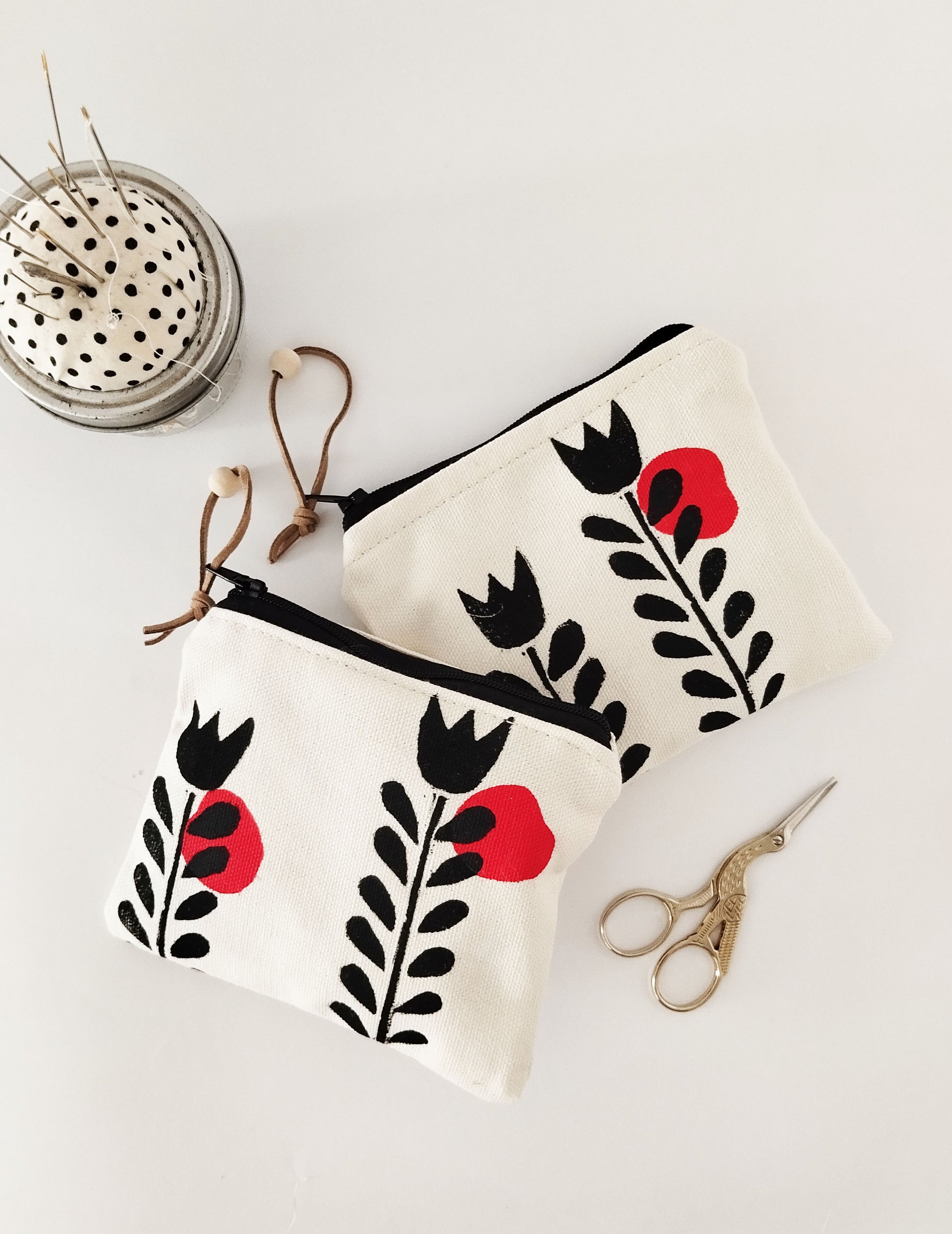 This block printed zipper pouch with the elegant scandi flower is a unique and thoughtful gift for any occasion, or a great way to treat yourself.