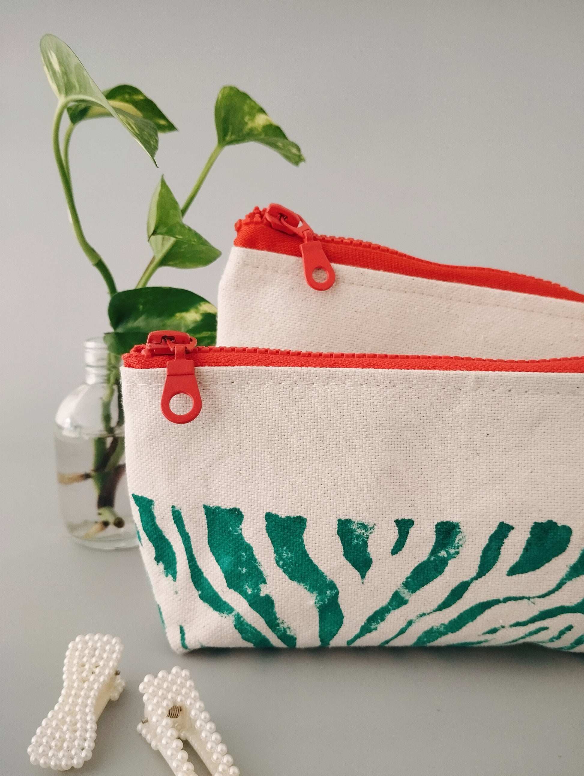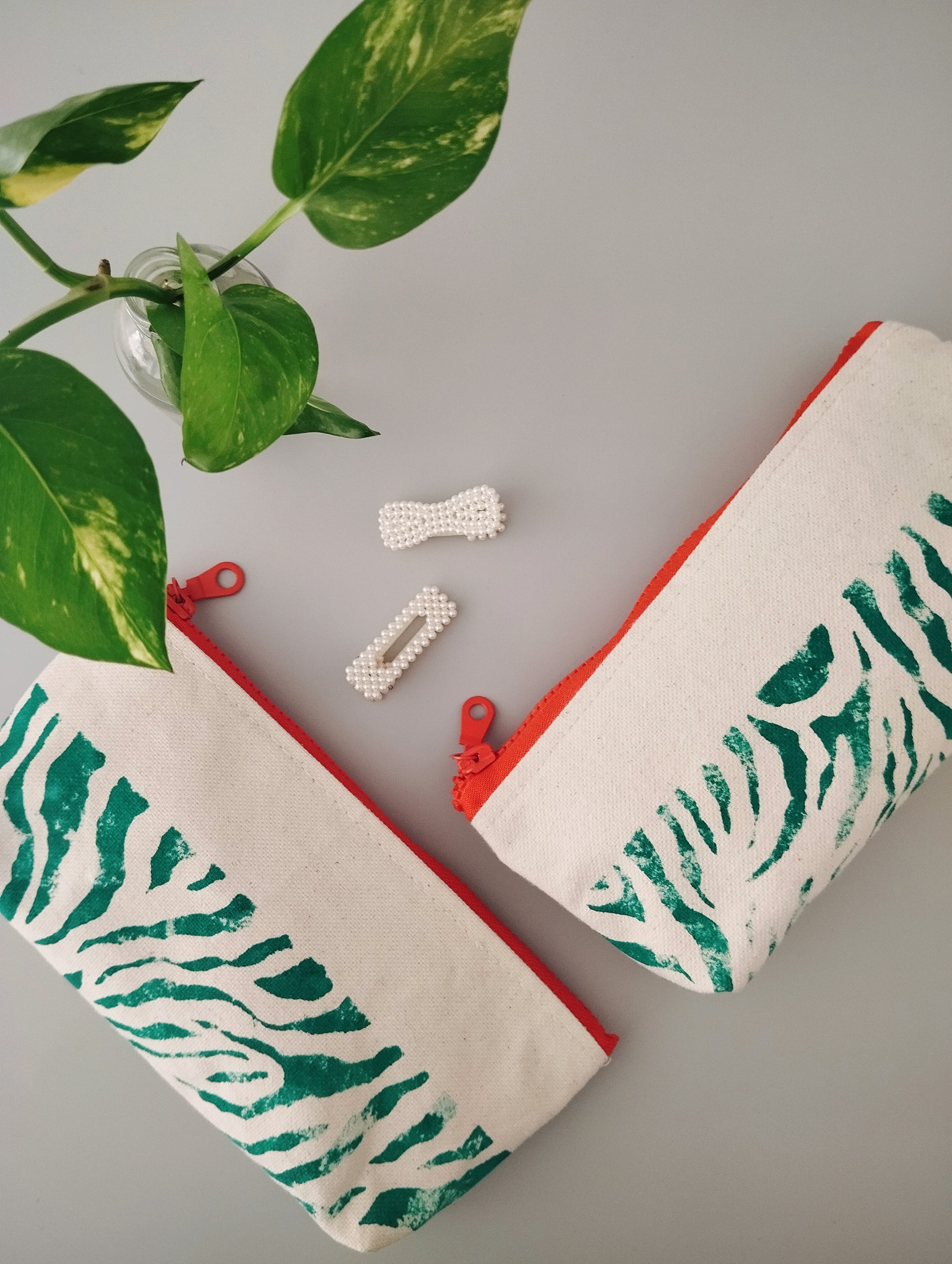 This hand painted zebra print zipper bag is the perfect addition to your busy every day bag. It is handmade of 100% cotton canvas (medium heavy duty canvas 320gr), that will hold its shape in a perfect way. The box corners make it even more spacious. The print is entirely made by hand with water-based inks. The colors are vibrant and the wide coral red zipper makes it even more stunning. It feels like you carry a real piece of art.